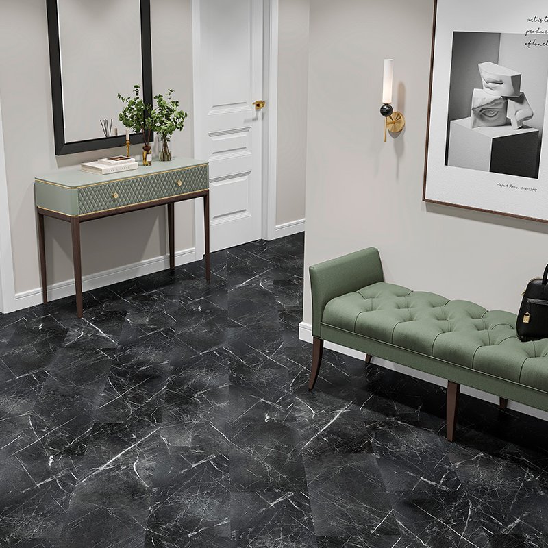 Кварц-виниловая SPC плитка Alta Step Roca SPC1901 «Оникс» - это эффектный декор под чёрный мрамор с выразительными светлыми прожилками. Глубокий графитово-чёрный фон придаёт интерьеру статусный и современный характер, а каменный рисунок смотрится благородно и архитектурно точно.