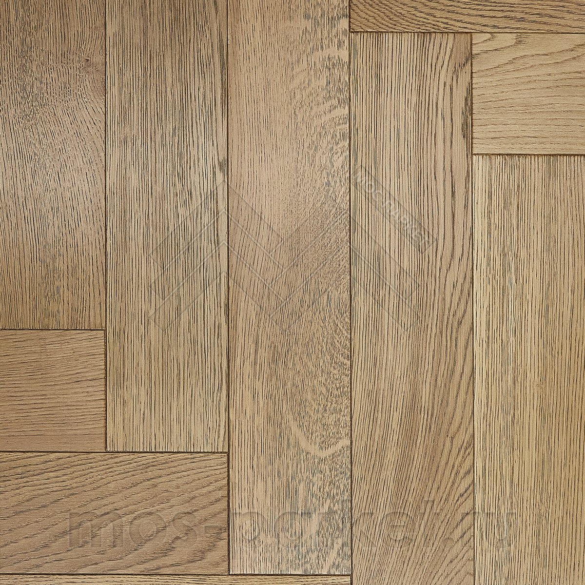 Конструкция состоит из верхнего ценного слоя дубовой ламели толщиной 3 мм в сортировке Селект, что гарантирует ровный цветовой тон без резких переходов и крупных сучков. Матовый лак надёжно защищает древесину от износа и подчёркивает её природную эстетику, придавая поверхности благородную бархатистую текстуру. Микрофаска по периметру каждой плашки делает рисунок укладки более выразительным, визуально подчёркивая геометрию паркета.
