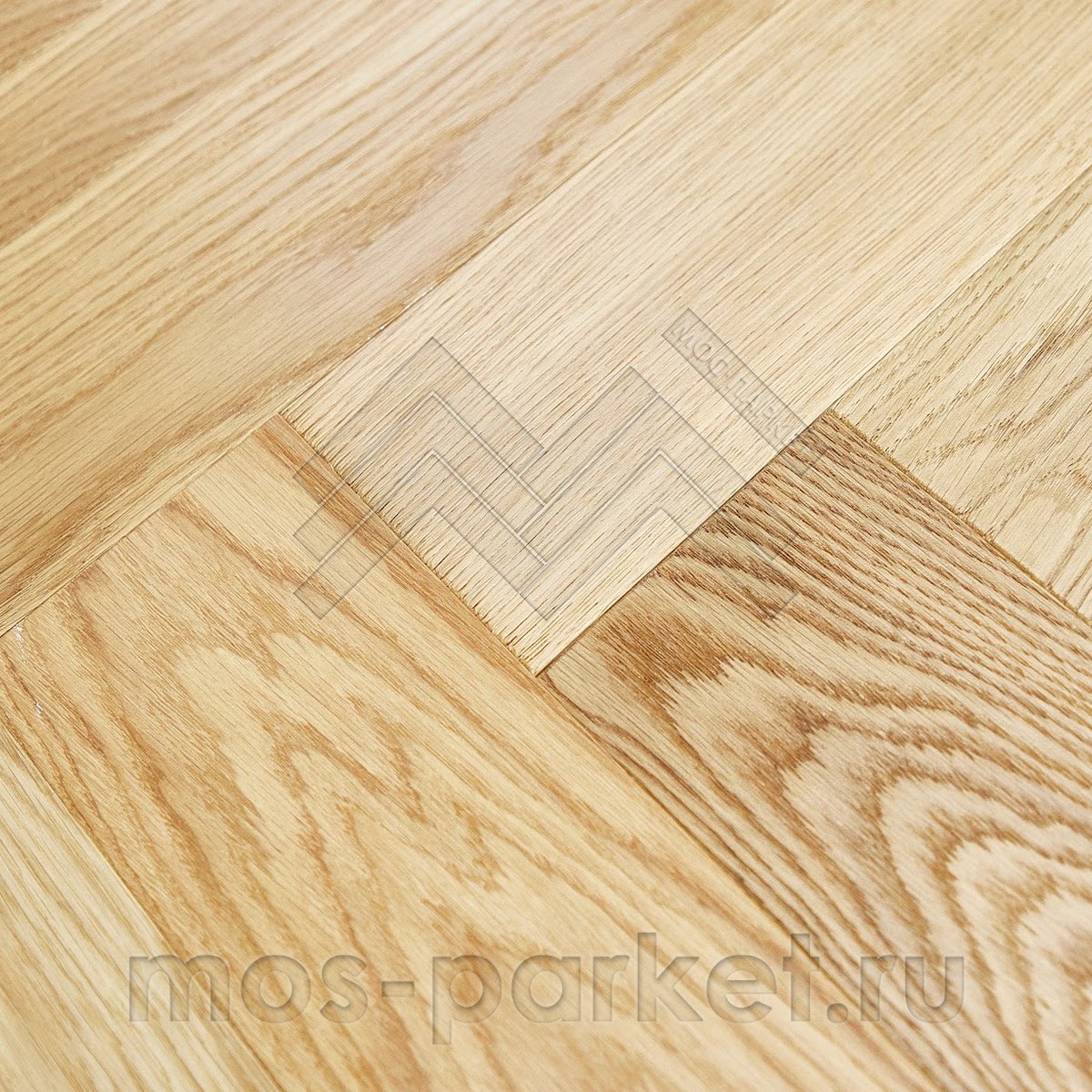 Каждая паркетная планка размером 110×600 мм имеет благородную селекцию Select, которая отличается однородным цветовым тоном, минимальным количеством сучков и сбалансированной текстурой. V-образная микрофаска по всему периметру подчёркивает геометрический рисунок укладки, придавая напольному покрытию дополнительную глубину и выразительность.