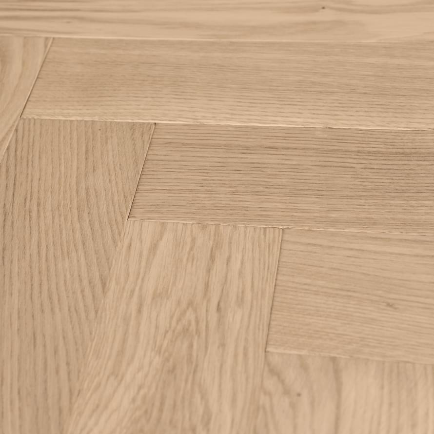 Инженерный паркет Primavera Oak Bailar Prime в раскладке английская ёлка - это воплощение классической эстетики и современного комфорта. Теплый кремово-бежевый оттенок с нежным брашированием словно переносит в залитое солнцем загородное утро. Такой пол наполняет пространство мягкостью и светом, создавая атмосферу уюта и благородства.