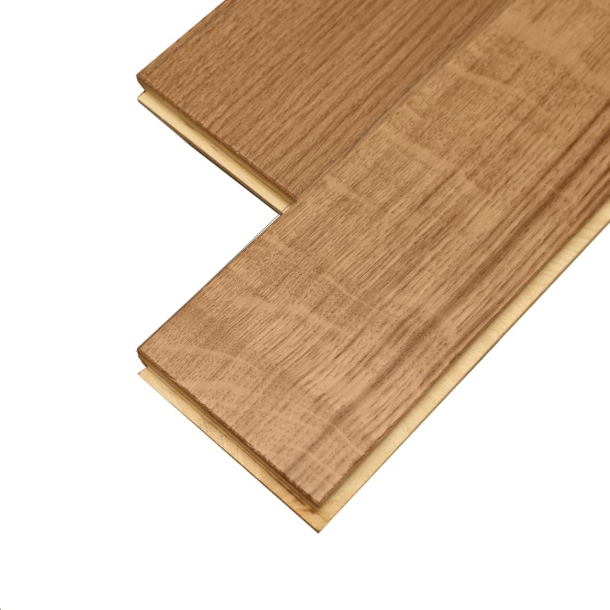 Формат планок 90×600 мм, толщина 15 мм - классическое решение для ритмичной и аккуратной английской ёлки. Конструкция двухслойная: дубовый слой 3 мм на влагостойкой фанере обеспечивает устойчивость к сезонным изменениям влажности и впечатляющую долговечность. Надёжное соединение «шип-паз» и V-фаска по периметру формируют безупречное прилегание, подчёркивая графику рисунка. Поверхность браширована и защищена матовым лаком - фактура ощущается природной, бархатистой, с чётким, но мягким рельефом древесных волокон.