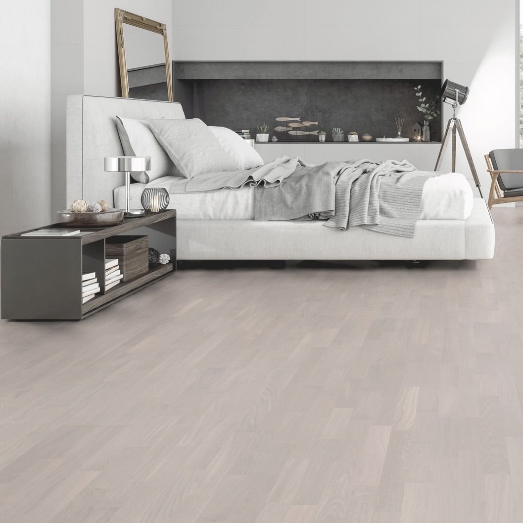 Трёхполосная паркетная доска Blanco Дуб Tale 3S кремового цвета от производителя Karelia-Upofloor. Доски толщиной 14 мм на замковой системе RealLoc не имеют фаски. Верхняя ламель дуба 3,5 мм в селекции Кантри покрыта матовым лаком. Напольное покрытие Дуб Тэйл (30112381A8281143) продаётся упаковками по 8 планок размером 188×2266 мм общей площадью 3,41 м². Предоставляется гарантия производителя в 10 лет для бытовых помещений.