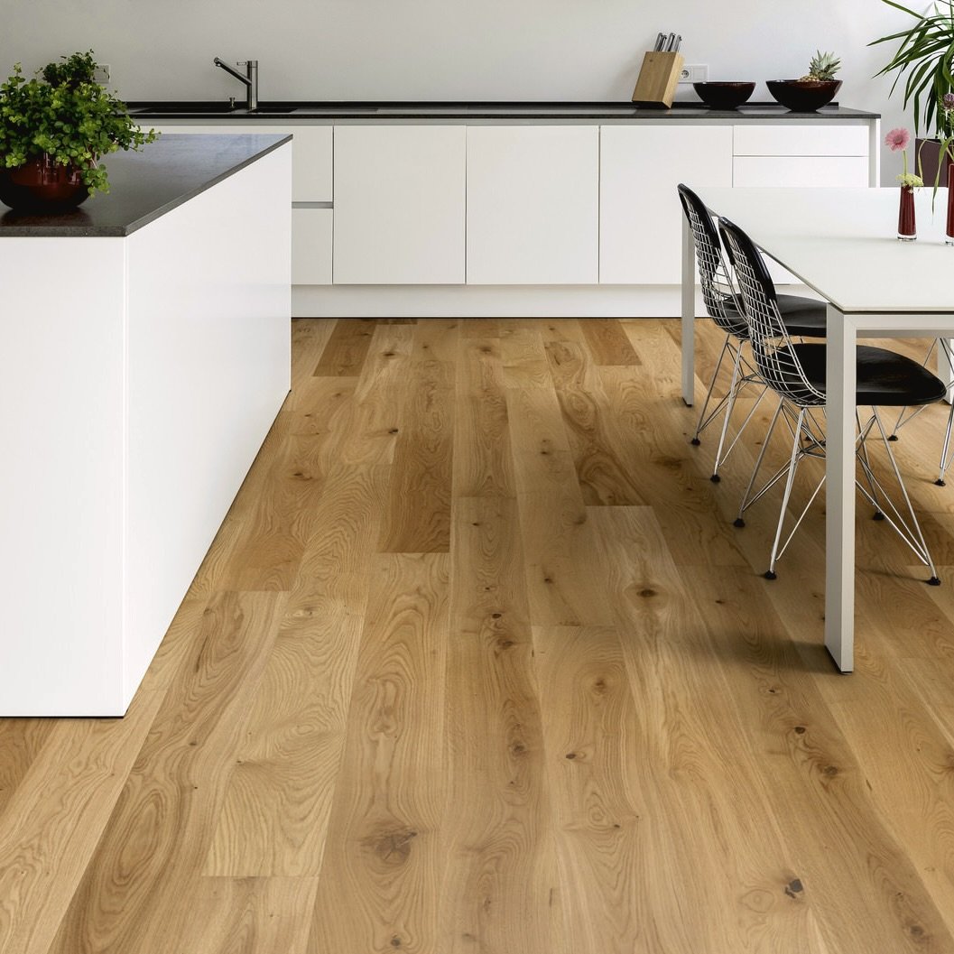Паркетная доска Blanco Дуб Vintage Oil 4V 1S воплощает классическую элегантность натурального дерева с лёгким золотистым оттенком, который наполняет пространство теплом и уютом. Этот декор станет идеальным решением для тех, кто ценит природную текстуру дуба и предпочитает естественные тона в оформлении дома.