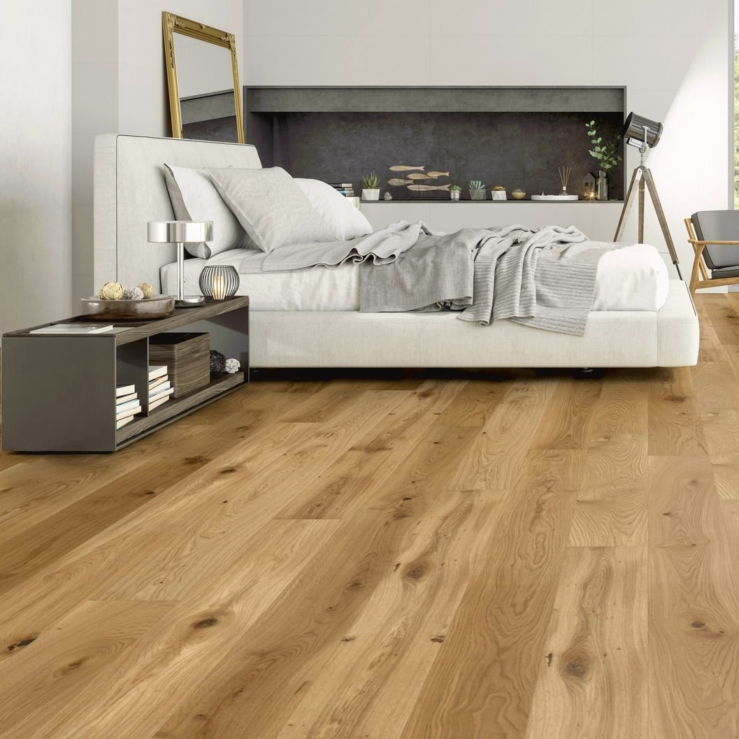 Однополосный формат с размерами 188×2266 мм создаёт эффект просторного и цельного напольного покрытия, что особенно актуально для современных интерьеров. Золотистые оттенки дуба гармонично сочетаются с белой и серой мебелью, натуральным текстилем и элементами из металла или стекла. Декор превосходно вписывается в стиль минимализм, скандинавский дизайн, лофт и современную классику.