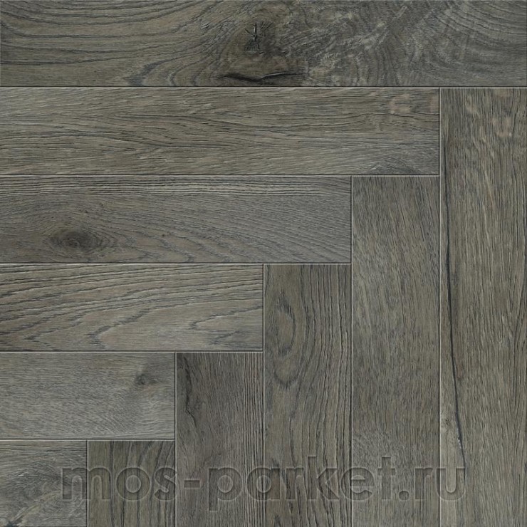 Влагостойкий ламинат 33 класса Mosaik в декоре под английскую елочку Дуб Брунталь (Brunthal Oak) коричнево-серого цвета от чешского производителя CBM толщиной 10 мм. Планки двух форматов на замковой системе Single Click с фаской по периметру. Матовая поверхность с текстурой дуба.