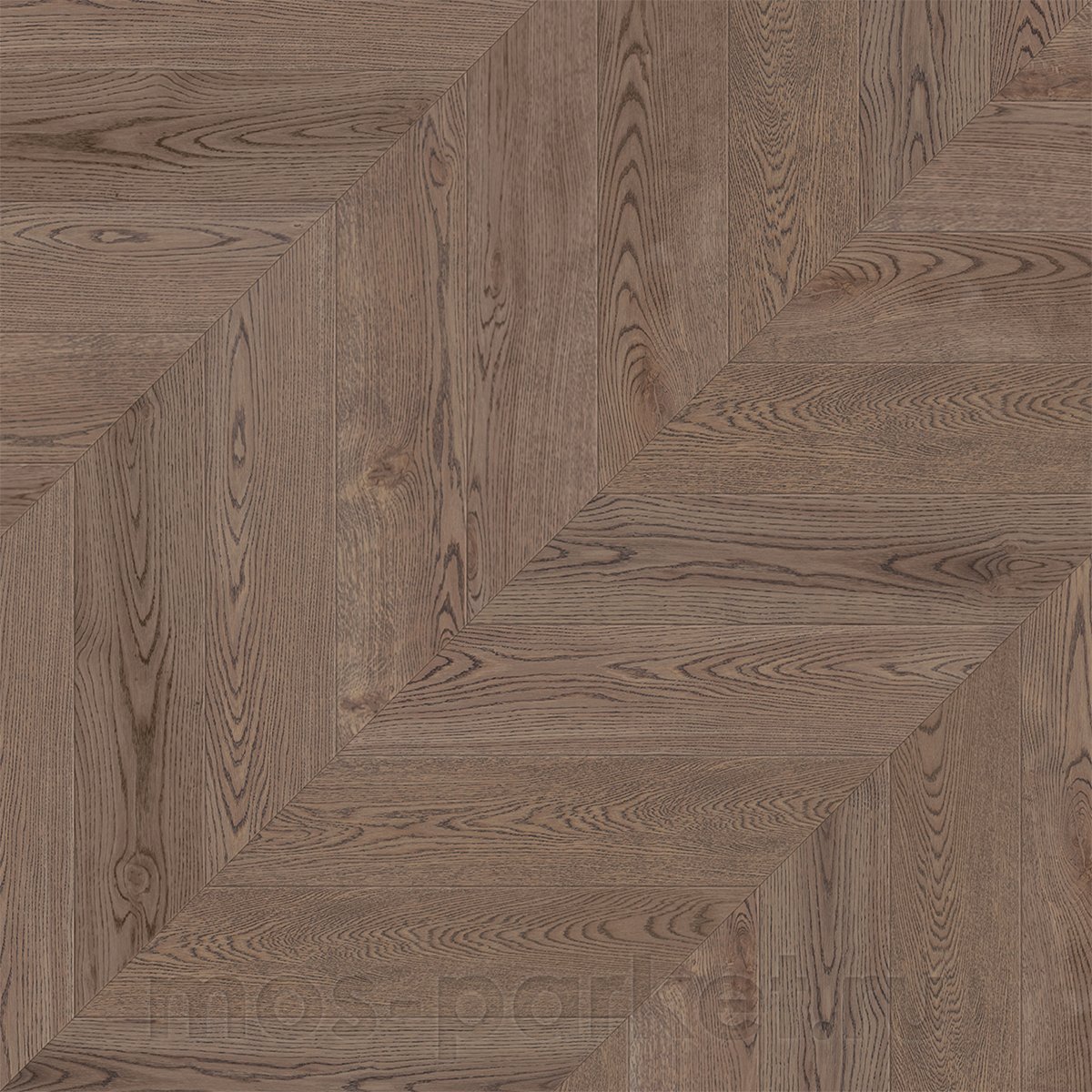 Серо-коричневый тон дуба, прохладный, спокойный, без выраженного тёплого подтона. Селекция Селект энд Бэттер, однородная текстура с незначительными прожилками и неконтрастными сучками до 10 мм. Ультраматовый финиш подчёркивает естественную фактуру дуба и полностью убирает блеск. Подходит для современных интерьеров, где важна визуальная матовость пола и отсутствие бликов.
