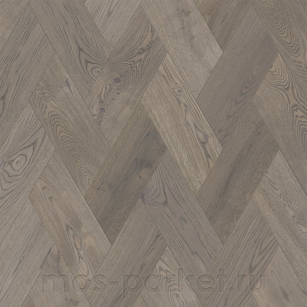Паркет Coswick Gray Shadow «Скалистый риф» в формате итальянской ёлки - дуб с бражированной поверхностью и покрытием шелковым маслом из коллекции Оттенки серого. Трёхслойная конструкция T&G с берёзовым средним слоем, монтаж жёсткой фиксацией на клей.