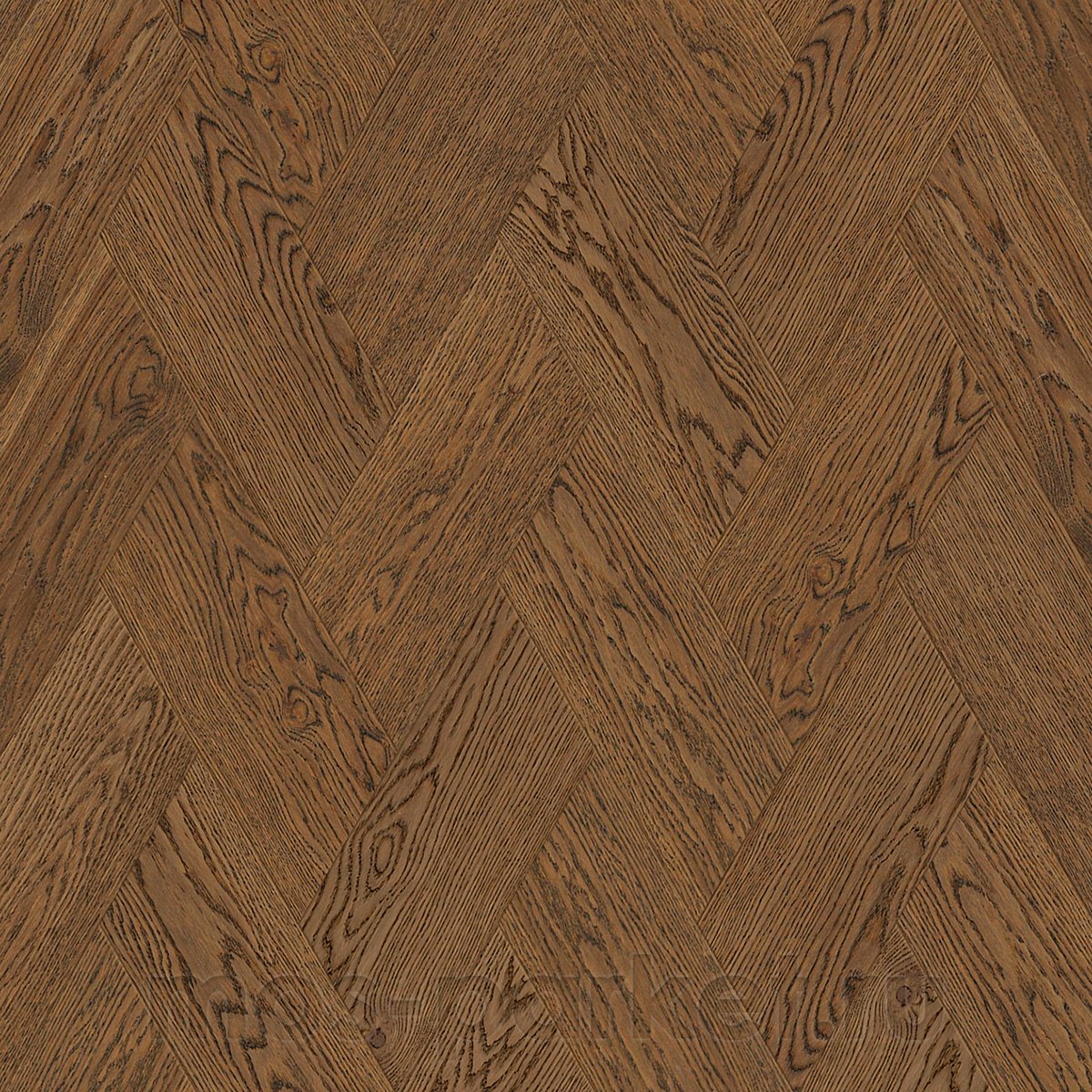 Трёхслойный паркет Coswick Dark Wood «Тростниковый рустикальный» из коллекции «Таинственный лес», дубовая ёлка с углом среза 60° в широком формате 438,78×190 мм. Этот размер даёт свободу выбора рисунка при укладке: помимо классической французской ёлки, те же планки можно уложить итальянской ёлкой, и тогда вместо привычных 60° получается более острый угол в 30°, а рисунок пола становится вытянутым и графичным. Такая вариативность доступна только в самом крупном формате линейки.