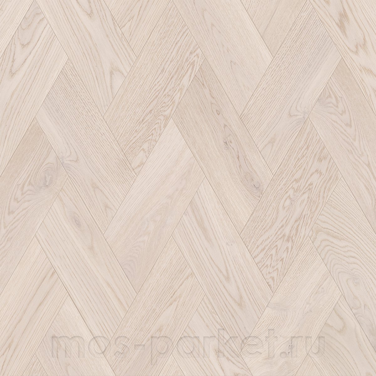 Паркет Coswick White Breathe «Подснежник» в формате итальянской и французской ёлки — дуб с ультраматовым шелковым маслом из коллекции Белые ночи. Трёхслойная конструкция T&G на клей.