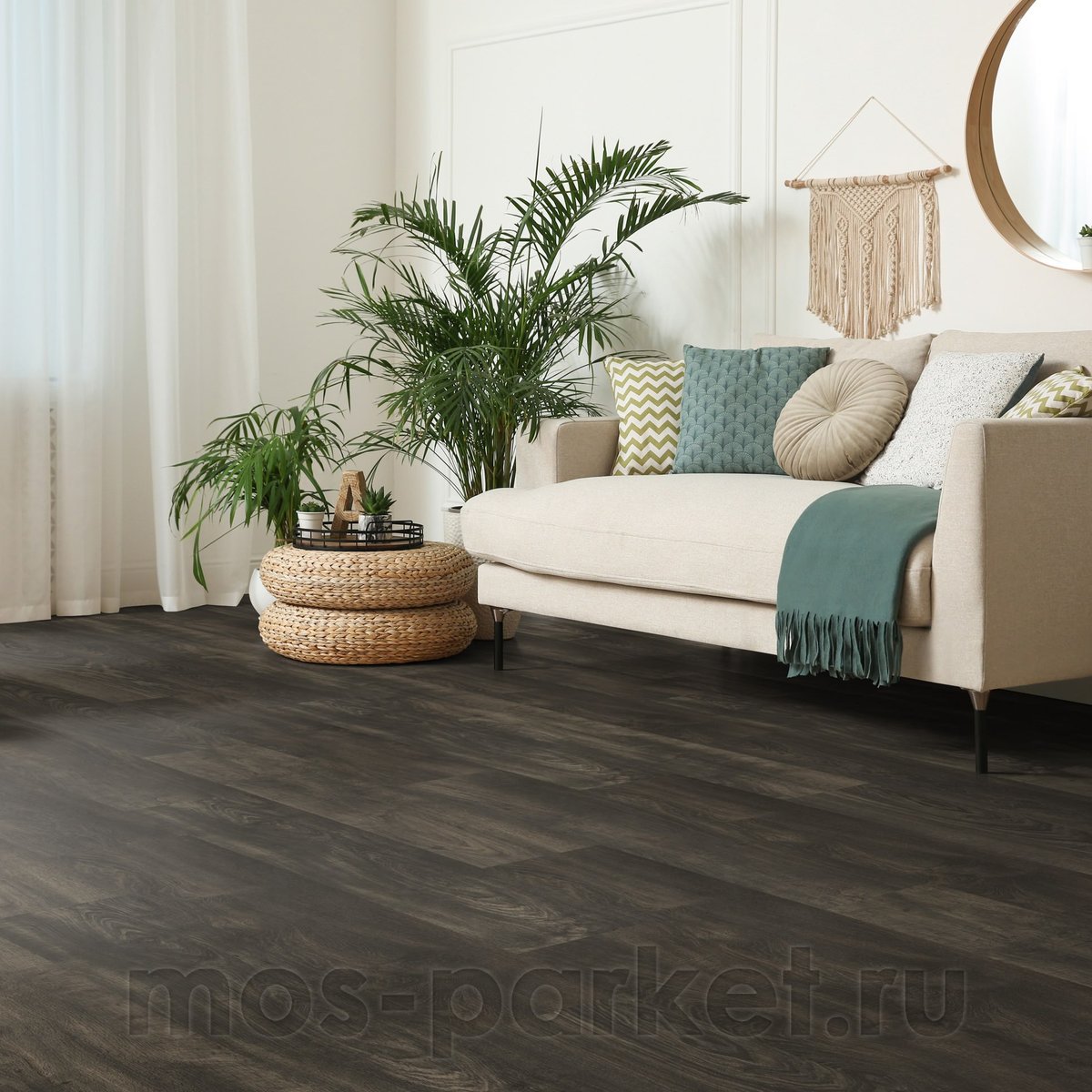 Премиальный БИО пол DISANO WaveAqua XL 548215 «Дуб Уистлер базальтовый» от немецкого концерна HARO создан для тех, кто ценит масштаб и бескомпромиссное качество. Главная гордость этой коллекции - экстра-широкие и длинные планки размером 243×2200 мм. Такой грандиозный формат в сочетании с изящной четырехсторонней фаской филигранно имитирует массивную палубную доску. Модель в благородном чёрном оттенке безупречно передает природный рисунок натурального дуба, визуально расширяя границы даже самых просторных залов и гостиных.
