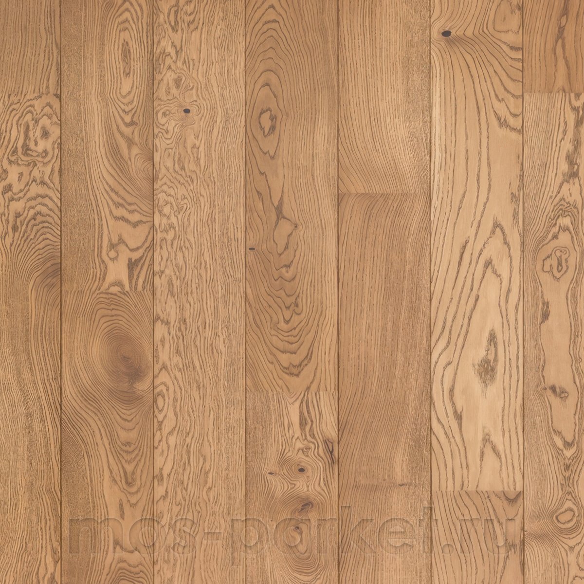 Поверхность доски брашированная: структура волокон выражена тактильно и визуально, годичные кольца и природные переходы цвета хорошо читаются при дневном и искусственном освещении. Масляное покрытие глубоко пропитывает древесину, сохраняет её натуральный матовый вид и позволяет дереву «дышать», а со временем оттенок становится более насыщенным и благородным. По периметру каждой планки выполнена четырёхсторонняя фаска, которая подчёркивает формат однополосного паркета и добавляет полу объёма.