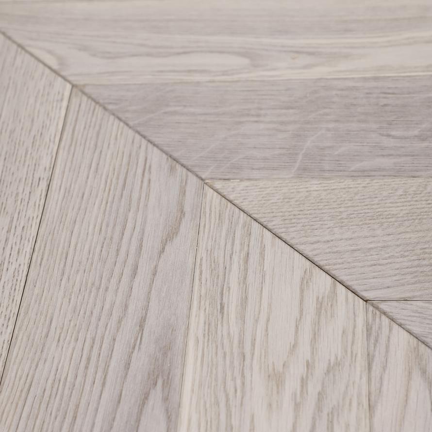 Инженерный паркет Primavera Oak Encender Select в раскладке французская ёлка наполняет пространство ощущением чистоты и воздушного света. Его утончённый светло-серебристо-бежевый оттенок с мягким пепельным подтоном делает пол визуально лёгким и спокойным. Такая цветовая гамма напоминает выбеленный дуб, который сохранил благородную природную текстуру, но приобрёл современный, утончённый характер.