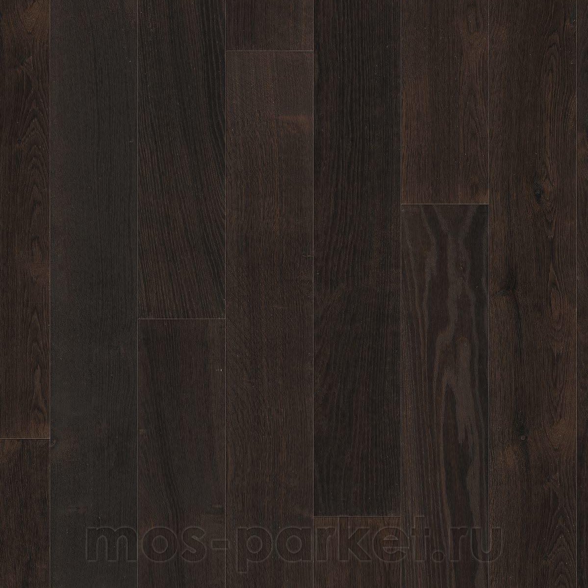 Для этого декора характерна селекция Trend, поэтому рисунок древесины выглядит достаточно спокойным, уравновешенным и классическим, без излишней пестроты и резких перепадов. Брашированная поверхность подчёркивает волокна дуба и делает тёмный оттенок более живым, добавляя ему глубину и натуральную фактуру. За счёт этого пол не выглядит плоским: на свету в нём читается структура дерева, мягкий рельеф и благородная игра полутонов. Лаковое покрытие naturaDur усиливает практичность поверхности и помогает сохранить аккуратный внешний вид пола в повседневной эксплуатации.