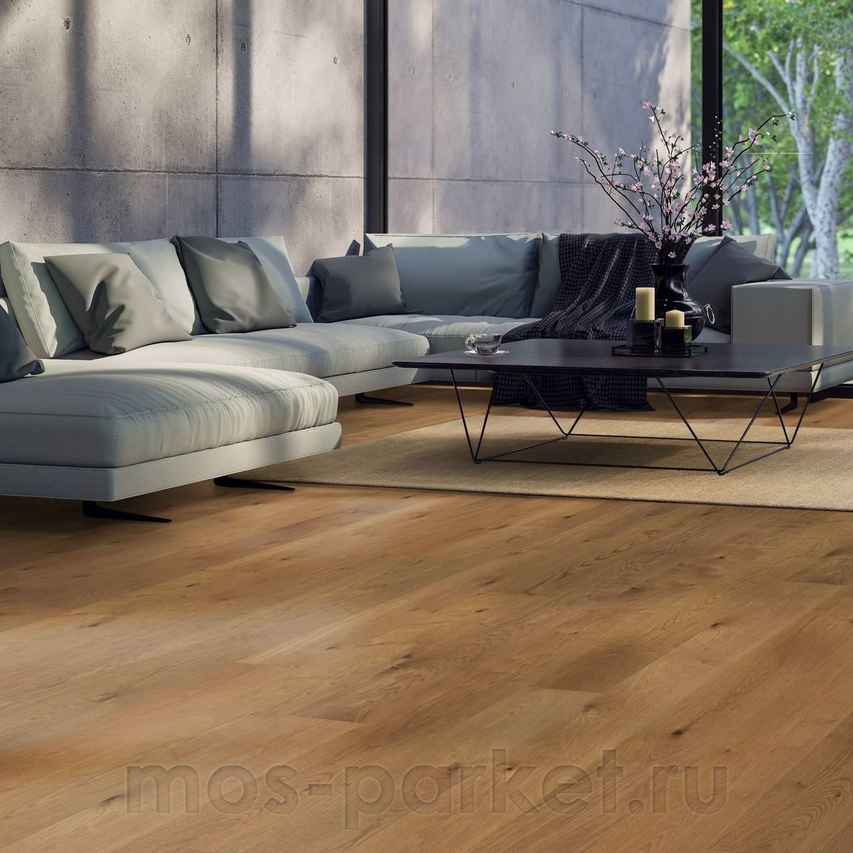 Коричневая однополосная паркетная доска Haro 4000 Series 528678 Дуб дымчатый (янтарный) покрыта матовым лаком naturaDur. Планки толщиной 13,5 мм на замковой системе Top Connect (5G) с фаской по периметру Верхняя брашированная ламель дуба 3,5 мм может многократно подвергаться шлифованию и реставрации. В упаковке 8 планок размером 173×2200 мм, общей площадью 3,05 м². Гарантия производителя 30 лет.