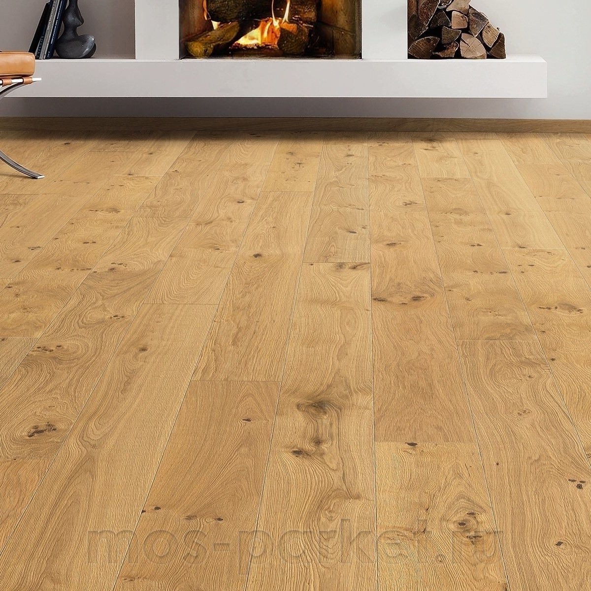 Светло-коричневая однополосная паркетная доска Haro 4000 Series 530793 Дуб Саваж ретро браш покрыта матовым лаком naturaDur. Планки толщиной 13,5 мм на замковой системе Top Connect (5G) с фаской по периметру. Верхняя брашированная ламель дуба 3,5 мм. В упаковке 8 планок размером 180×2200 мм, общей площадью 3,17 м². Гарантия производителя 30 лет.