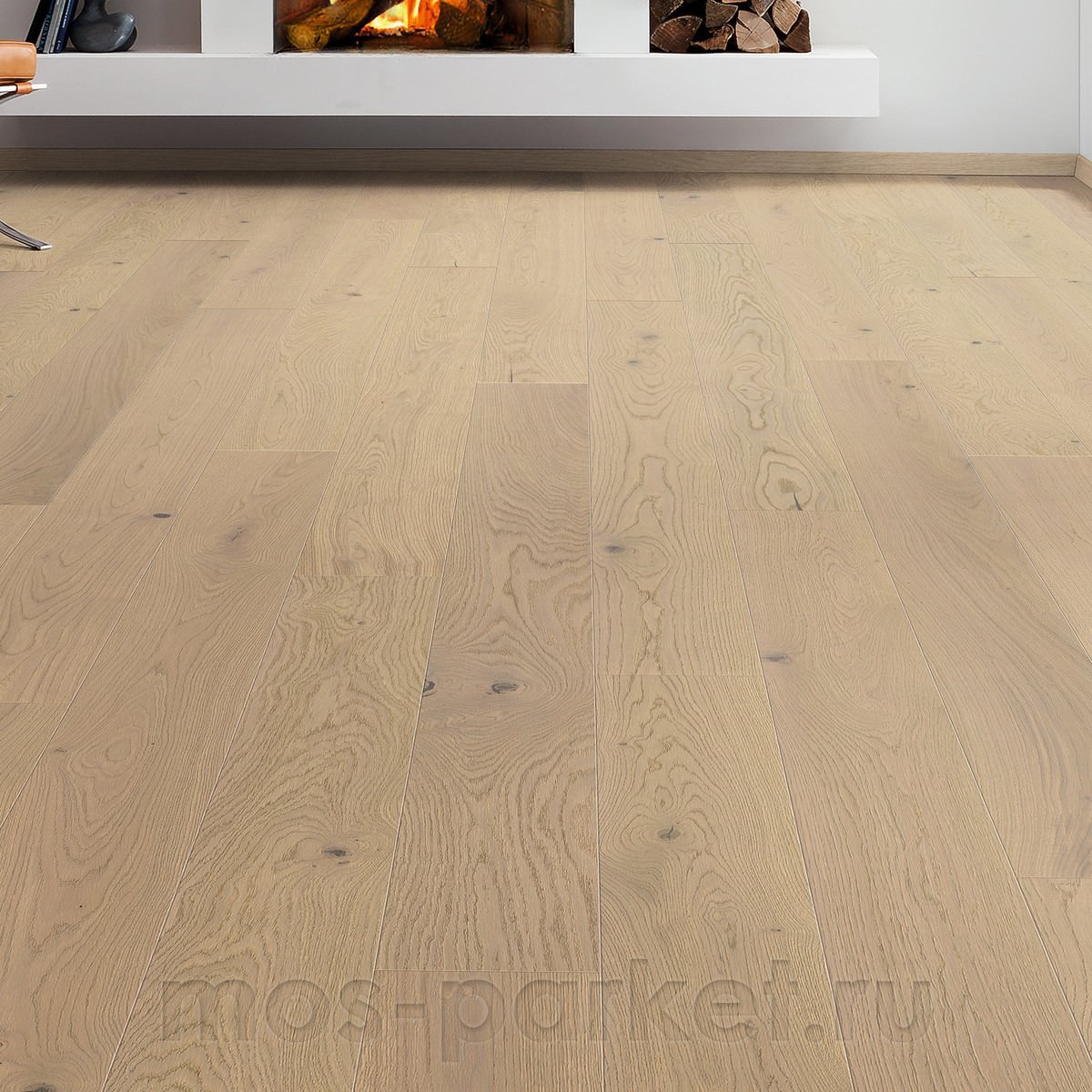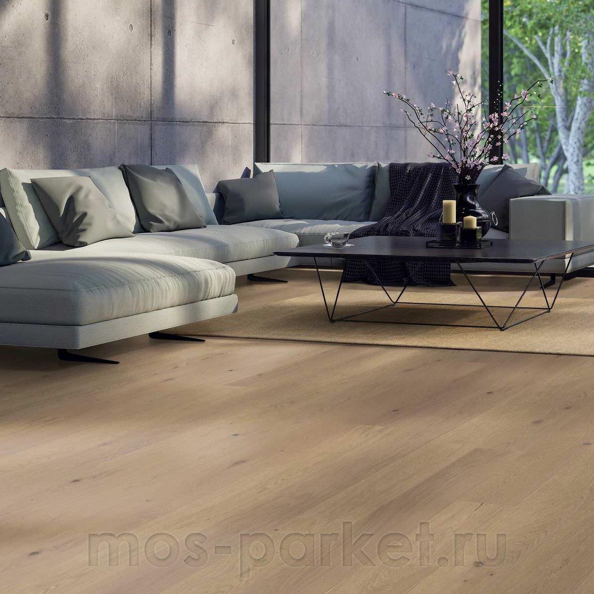 Светло-коричневая однополосная паркетная доска Haro 4000 Series 547506 Дуб 4 песочно-серый Саваж браш покрыта матовым лаком naturaDur. Планки толщиной 13,5 мм на замковой системе Top Connect (5G) с фаской по периметру. Верхняя брашированная ламель дуба 3,5 мм. В упаковке 8 планок размером 180×2200 мм, общей площадью 3,17 м². Гарантия производителя 30 лет.