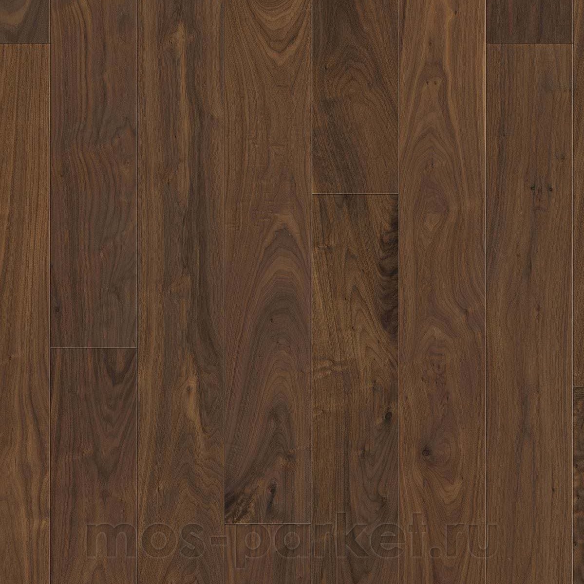 Тёмно-коричневая однополосная паркетная доска Haro 4000 Series 547508 Орех американский Маркант покрыта матовым лаком naturaDur. Планки толщиной 13,5 мм на замковой системе Top Connect (5G) с фаской по периметру. В упаковке 8 планок размером 180×2200 мм, общей площадью 3,17 м². Гарантия производителя 30 лет.