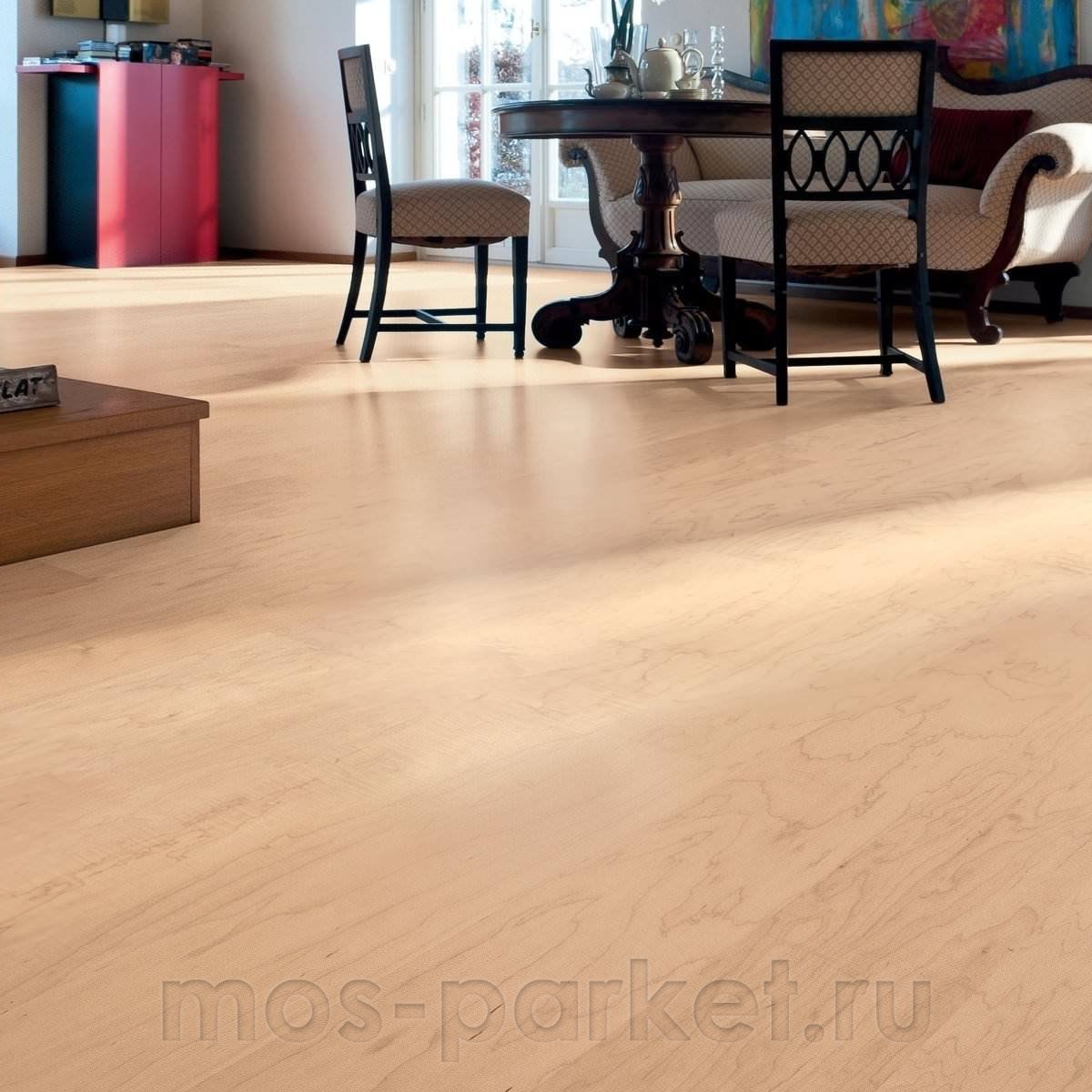 Бежевая однополосная паркетная доска Haro 4000 Series 548122 Клён канадский Маркант покрыта матовым лаком naturaDur. Планки толщиной 13,5 мм на замковой системе Top Connect (5G) с фаской по периметру. В упаковке 8 планок размером 180×2200 мм, общей площадью 3,17 м². Гарантия производителя 30 лет.