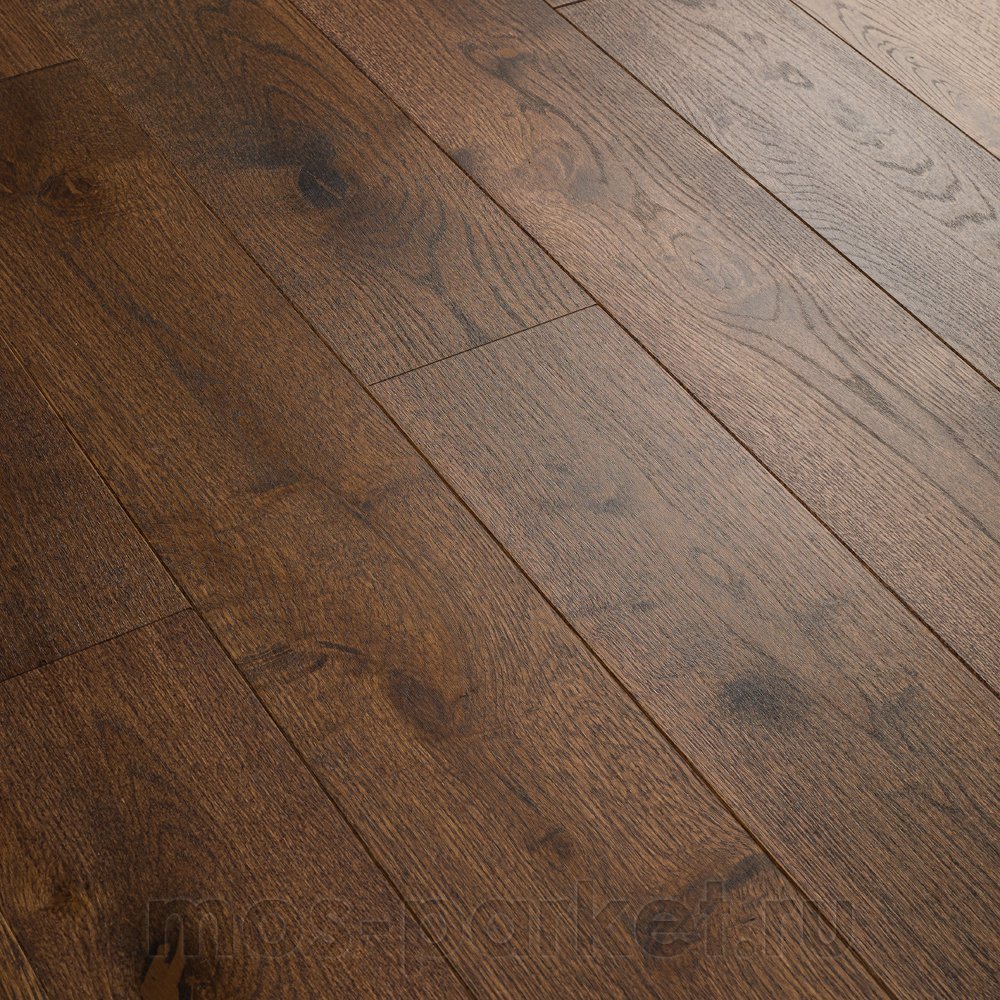 В этой селекции исключены резкие контрасты, а природная эстетика дуба выражена очень деликатно: допускаются лишь миниатюрные светлые сучки диаметром до 10 мм и крошечные темные вкрапления до 5 мм, которые профессионально зашпатлеваны в тон и практически не выделяются на общем фоне.