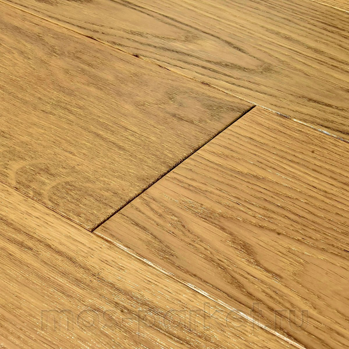 Доска изготовлена по двухслойной технологии: верхний слой из дуба толщиной 3 мм склеен с основанием из влагостойкой берёзовой фанеры. Такая конструкция обеспечивает надёжность и стабильность геометрии даже при использовании с системами тёплого пола. Размер каждой плашки составляет 145×1300 мм, общая толщина - 15 мм. По периметру выполнена аккуратная V-образная фаска, соединение - гребень‑паз.
