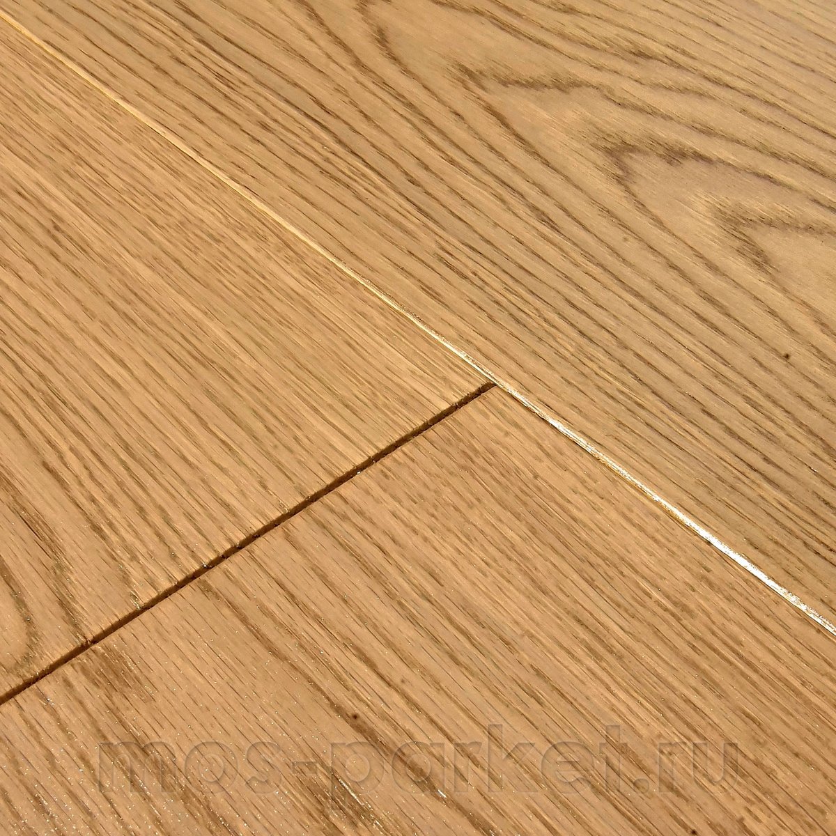 Конструкция доски выполнена в двух слоях: верхний слой из натурального дуба толщиной 3 мм соединён с основой из влагостойкой берёзовой фанеры. Такое сочетание обеспечивает стабильность размеров и устойчивость к колебаниям температуры и влажности. Доска имеет толщину 15 мм, увеличенную ширину 180 мм и длину 1500 мм, что придаёт покрытию монолитный и выразительный вид.