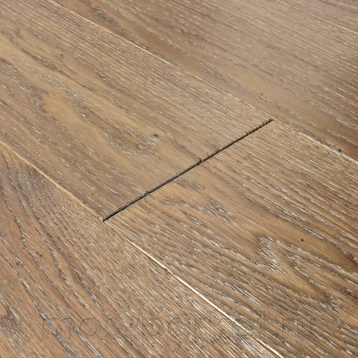 Доска выполнена по двухслойной технологии: верхний слой из дуба толщиной 3 мм надёжно склеен с основанием из влагостойкой берёзовой фанеры. Конструкция устойчива к деформациям и подходит для укладки на тёплый пол. Размеры плашек - 145×1300 мм, общая толщина - 15 мм. По периметру предусмотрена V-образная фаска, подчёркивающая форму доски, соединение - гребень‑паз.