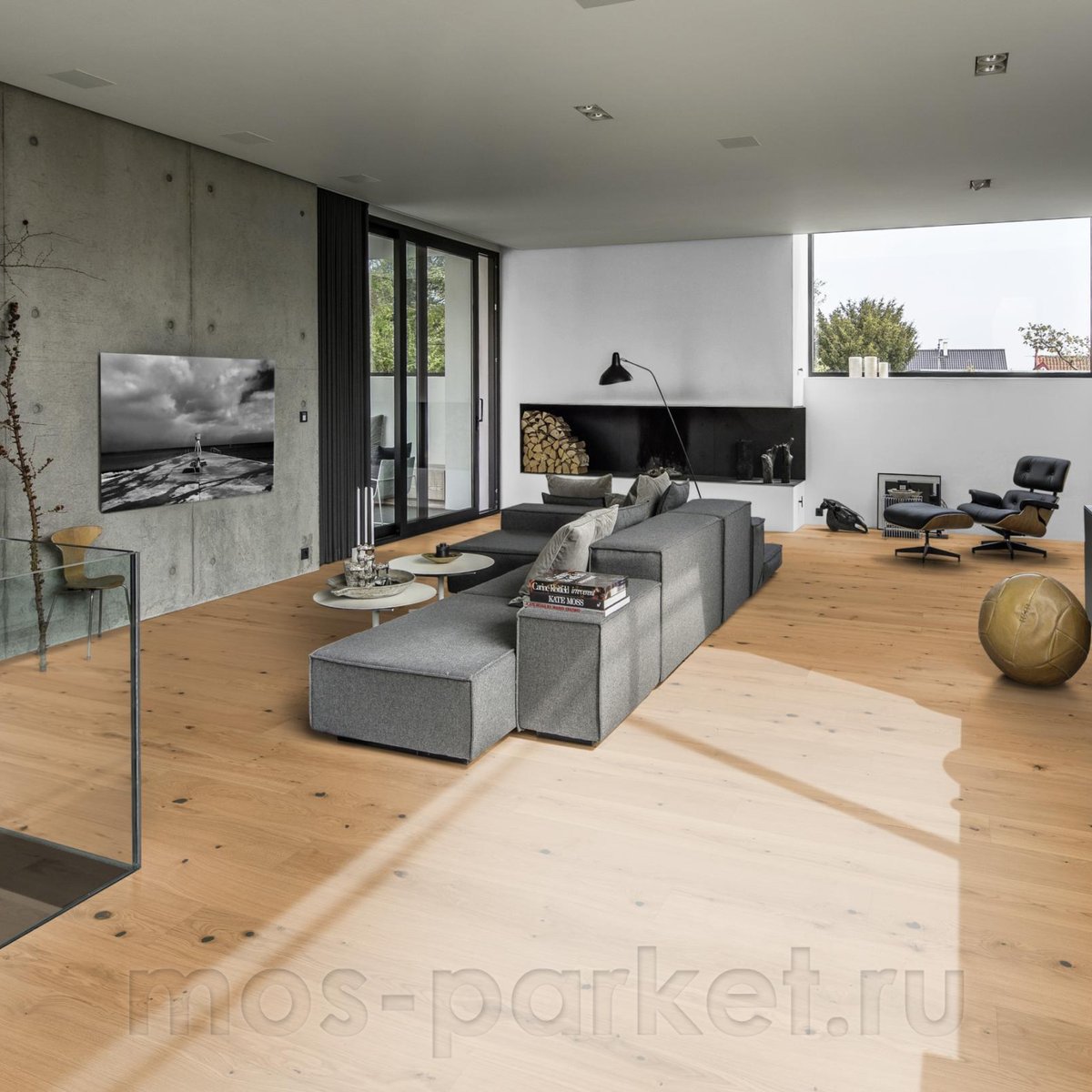 Поверхность покрыта ультра-матовым лаком, который визуально максимально приближен к натуральному маслу, но при этом отличается высокой износостойкостью и простотой ухода. Брашированная обработка раскрывает текстуру дуба и делает поверхность тактильно приятной, а фаска по четырём сторонам каждой планки добавляет полу глубину и аккуратно подчёркивает формат доски. Замковая система Woodloc® 5G позволяет выполнять как плавающую, так и клеевую укладку, включая использование с системами тёплого пола. Паркет рассчитан на длительный срок службы и сопровождается официальной гарантией производителя 15 лет.