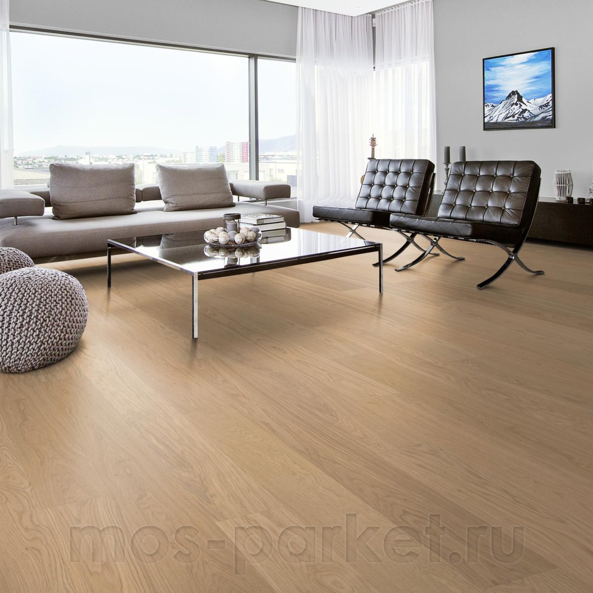 Паркетная доска Kährs Life Authentic Plank Oak Ginger - это однополосный дубовый пол со светлым, тёплым и естественным оттенком, создающий ощущение чистоты и спокойствия в пространстве. Декор вдохновлён имбирём — натуральным и свежим по восприятию, и это настроение точно передаётся через древесину: поверхность выглядит мягкой, светлой и визуально лёгкой, без резких контрастов.