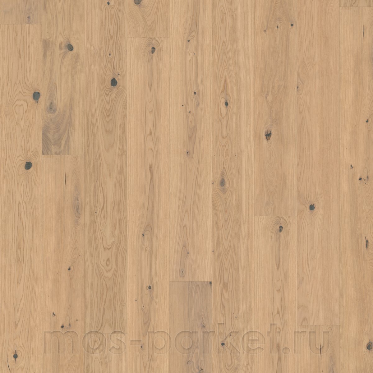 Поверхность защищена ультра-матовым лаком, визуально близким к натуральному маслу, но более практичным в повседневной эксплуатации. Брашированная обработка подчёркивает рельеф дуба и делает покрытие тактильно выразительным, а фаска по периметру аккуратно выделяет каждую планку. Замковая система Woodloc® 5G подходит для плавающей и клеевой укладки, включая монтаж на тёплый пол.