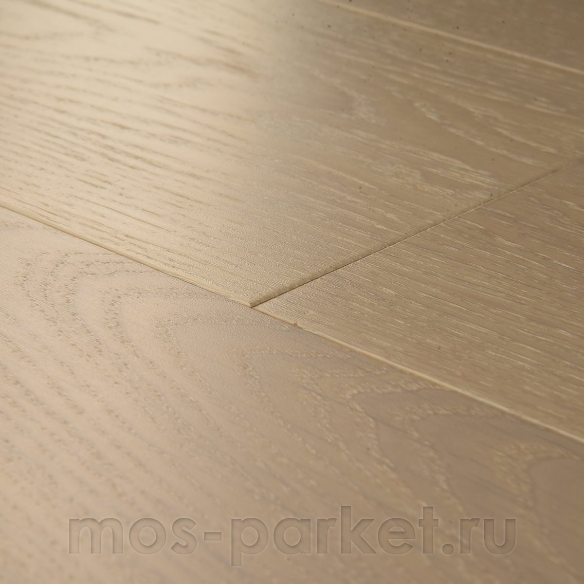 Однополосная паркетная доска Essence Дуб Story 138 Sandy White кремового цвета в сортировке Natur, от финского производителя «Карелия-Упофлор» толщиной 14 мм на замковой системе Profiloc. Брашированная ламель дуба толщиной 3,5 мм с фасками по периметру доски покрыта белым матовым лаком в пять слоёв. В сортировке Natur древесина более разнообразная по текстуре и оттенкам. Естественные узоры и гармоничные тона придают полу особый характер. Встречаются единичные сучки. Декор Oak 4 Story 138 Sandy White имеет пятислойную конструкцию доски.