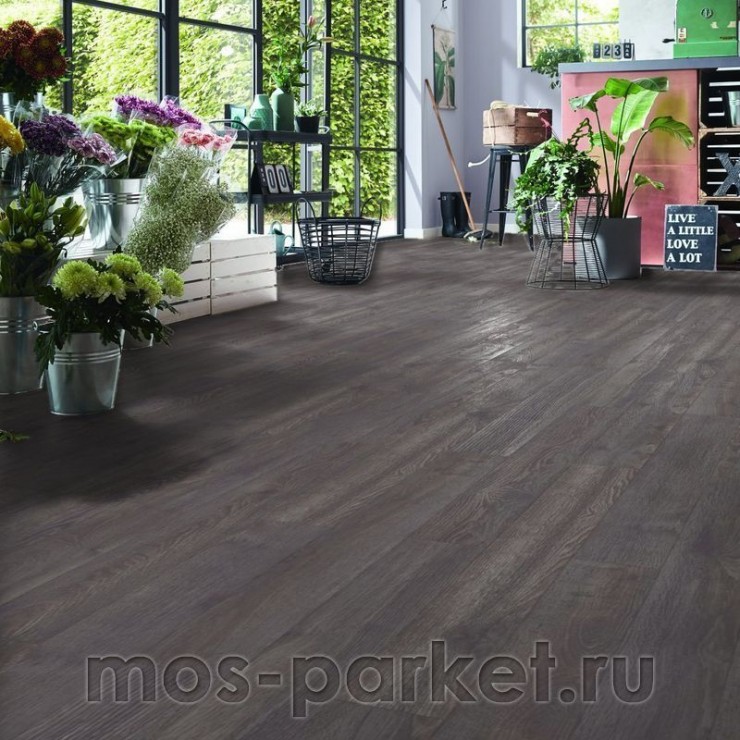 Однополосный ламинат 33 класса Aqua Amazone в декоре Дуб Эльба черный (D6010 Elba Oak Black) серо-коричневого цвета от производителя Kronotex толщиной 10 мм, на замковой системе 5G CLICK с V фаской по периметру. Полуматовая поверхность с текстурой Пихта. Напольное покрытие Aqua Amazone Дуб Эльба черный (D6010) продаётся упаковками по 6 планок размером 1380х157 мм общей площадью 1,3 м².