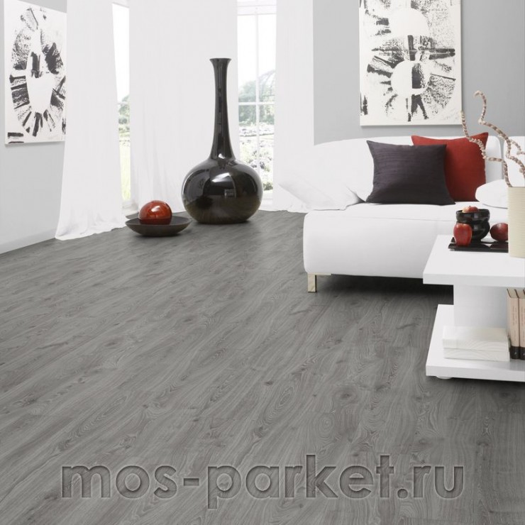 Высокопрочный ламинат 33-го класса, от немецкого производителя Kronotex (Кронотекс), предоставил данную модель из коллекции Robusto в модном цвете Дуб Таймлесс серый. В одной упаковке 1,293 м2 состоящая из 5 панелей размером 1375х188х12 мм. V-образная фаска по периметру доски.