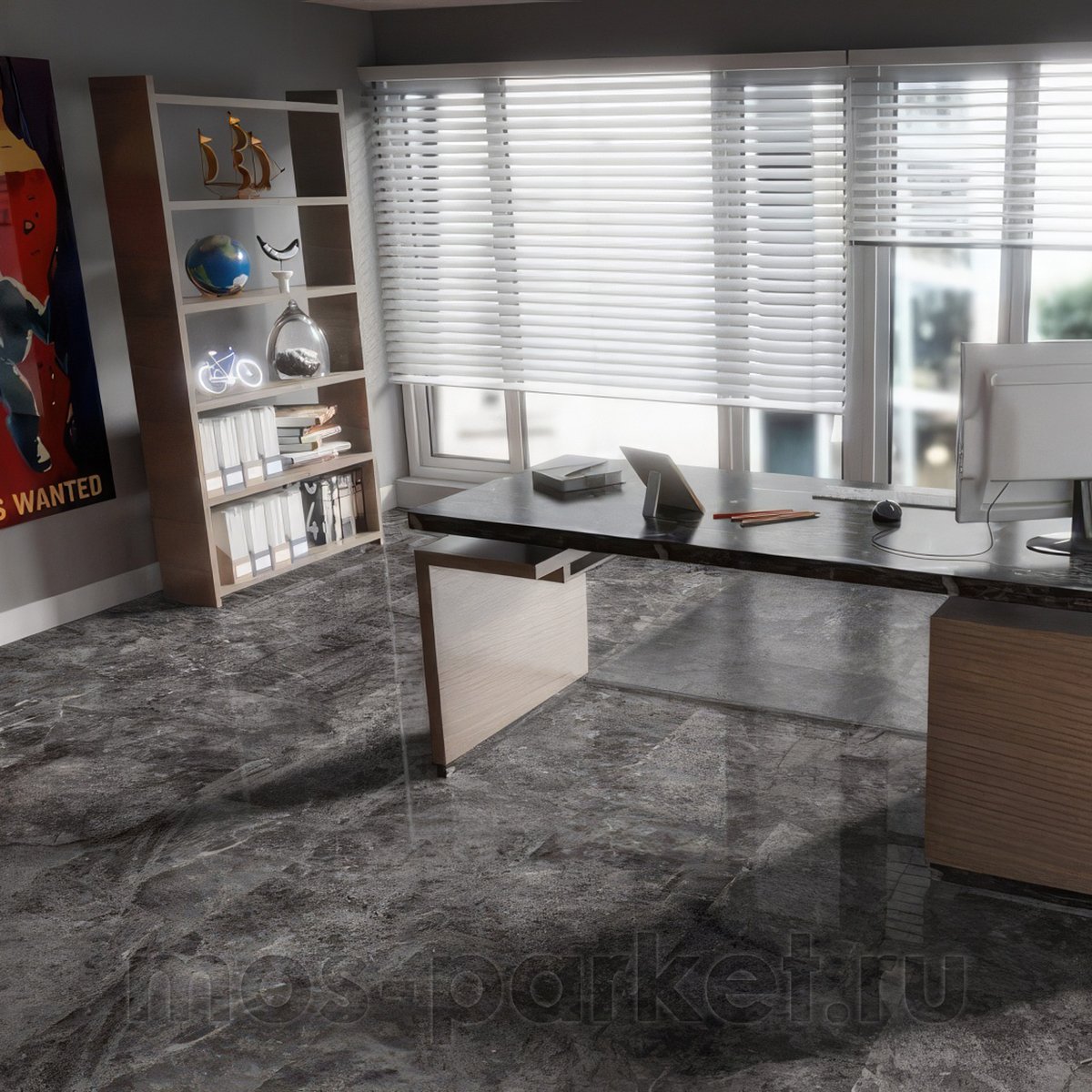 Falquon Stone 2.0 Q1022 Martico Nero — это не просто ламинат, а настоящее визуальное заявление. Он воспроизводит образ темного мрамора с мощными белыми прожилками, будто вырезан из цельной глыбы камня. Причём не матового, а глянцевого, почти зеркального — благодаря особой технологии отверждения лака с использованием электронного луча. Глубокий блеск и текстура, которая будто движется при свете.