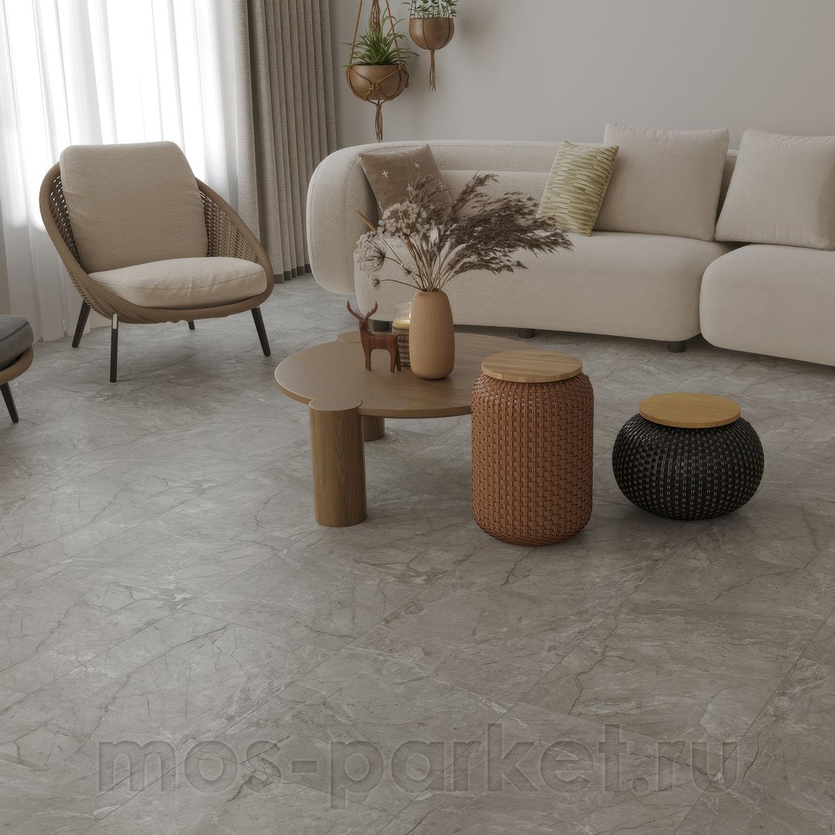 Виниловая плитка Alpine Floor Stone Premium LVT «Гармония» ECO 26-7 Байлот выполнена в насыщенном сером оттенке с мраморными прожилками и естественными перепадами тона. Фактура камня придаёт интерьеру монументальность и солидность, сохраняя при этом современную утончённость.
