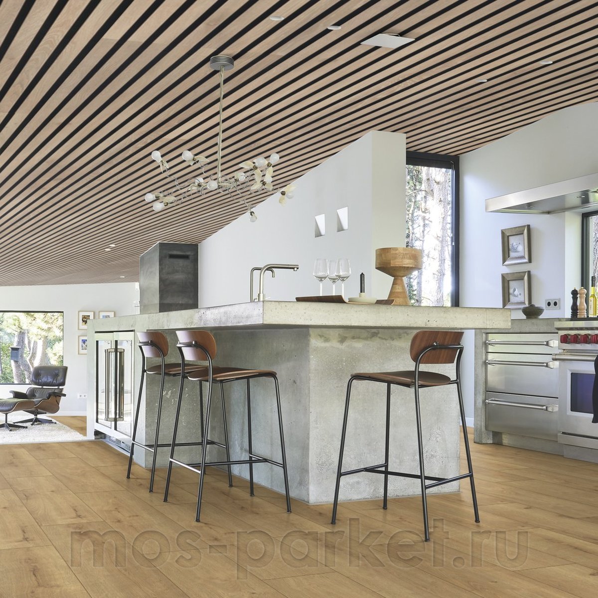 Ламинат выполнен на плотной HDF-основе и имеет толщину 10 мм, что обеспечивает стабильность покрытия и комфорт при эксплуатации. Формат планки 244×1288 мм подчёркивает рисунок древесины и позволяет создать цельное, аккуратное напольное полотно. Замковая система Multiclic обеспечивает надёжную фиксацию панелей и удобную плавающую укладку без применения клея.