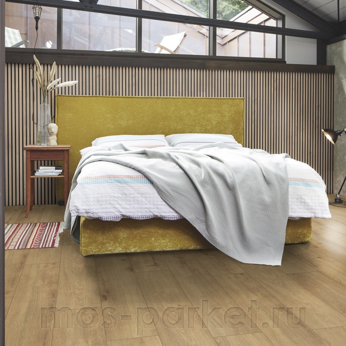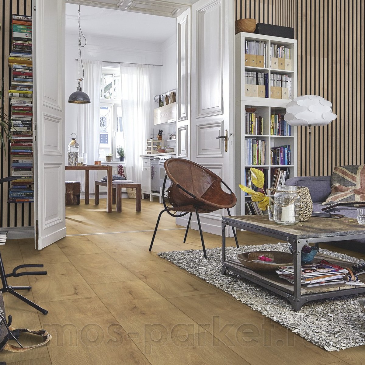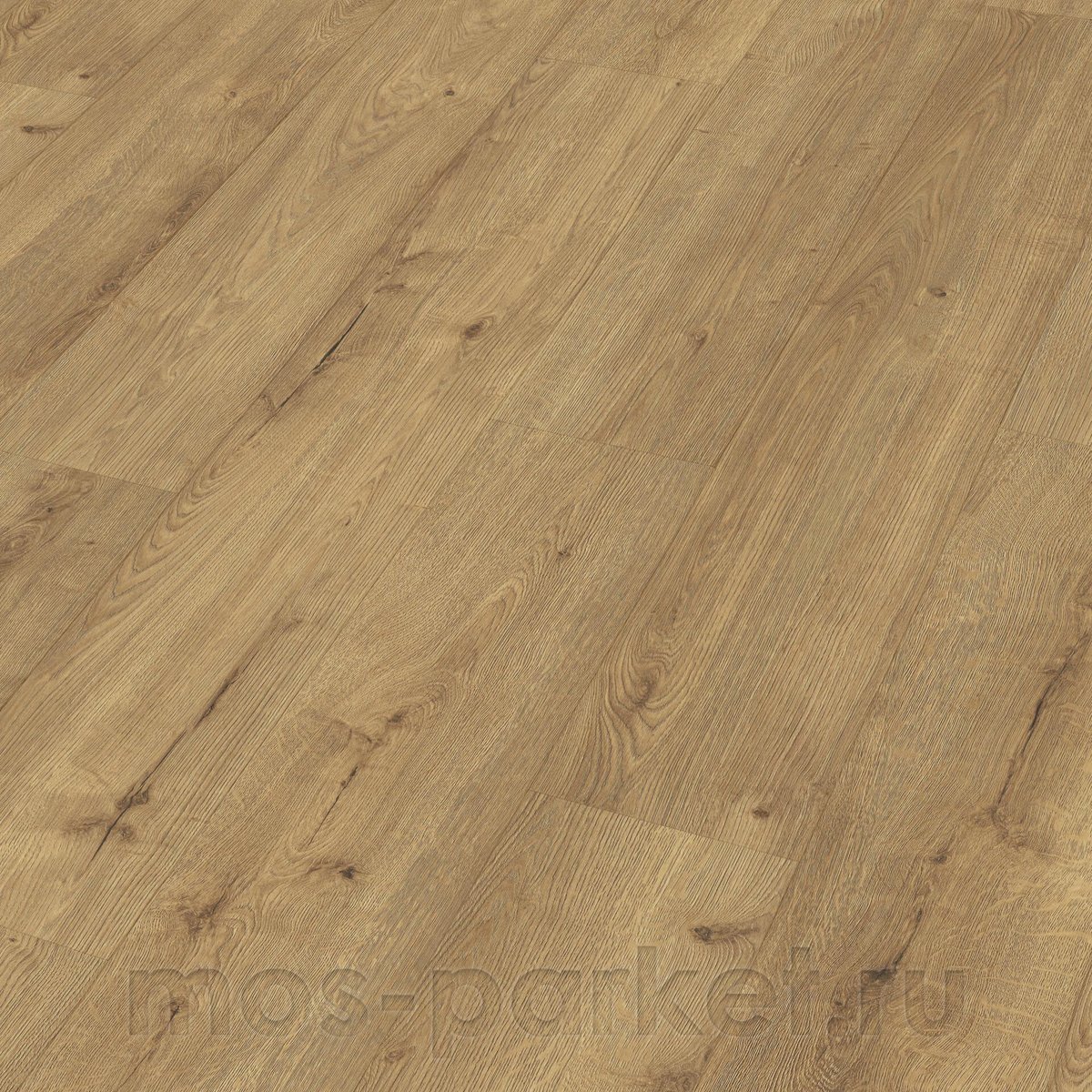 Meister LD 250 Дуб Шампань - тёплый дубовый декор с выраженным натуральным характером и благородным золотисто-медовым оттенком. Цвет напоминает выдержанное дерево с мягкими переливами и подчёркнутой текстурой волокон, благодаря чему пол выглядит живо и естественно, не перегружая интерьер.