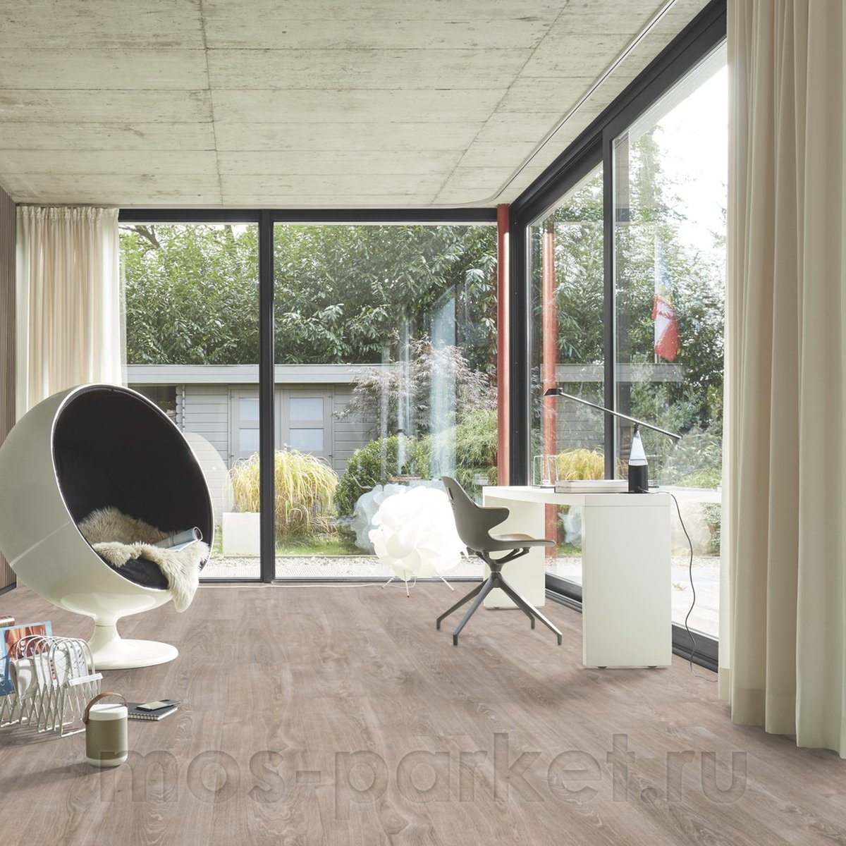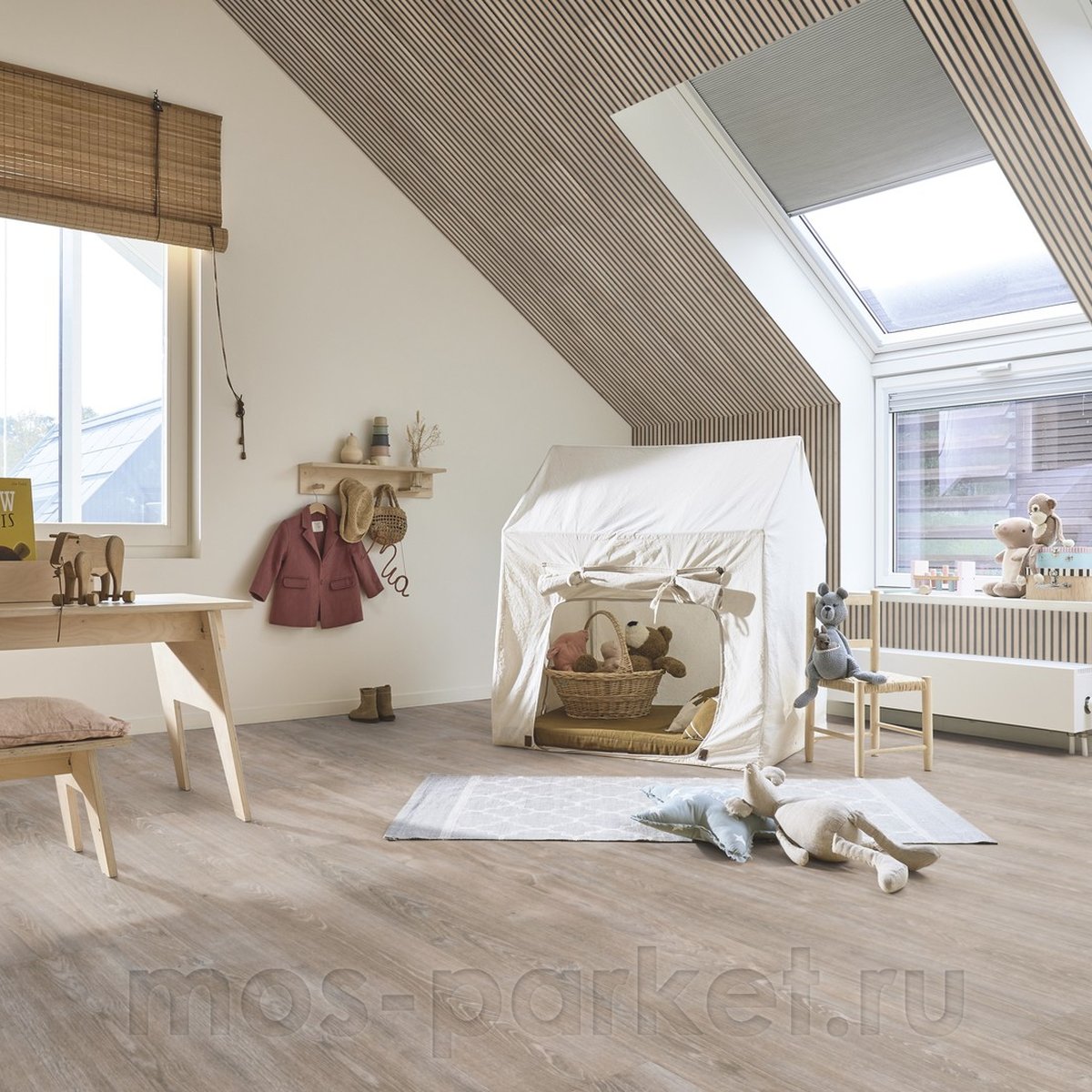 Meister LL 250 Дуб Вайт Грей - светло-коричневый дуб с сероватыми прожилками и мягким нейтральным подтоном, выполненный в сдержанной натуральной текстуре древесины. Цвет выглядит современно и спокойно, с гармоничным балансом между тёплыми и холодными оттенками, благодаря чему пол легко вписывается в актуальные интерьерные решения и не теряет актуальности со временем.