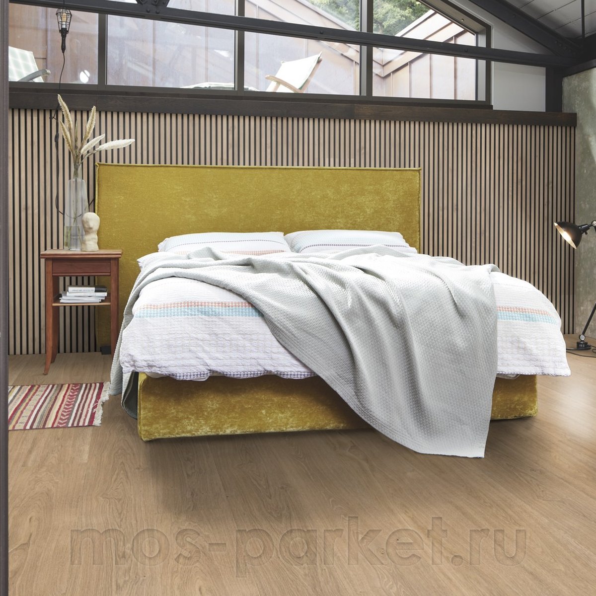 Покрытие выполнено на прочной HDF-плите высокой плотности и имеет толщину 10 мм, благодаря чему пол отличается стабильностью, надёжностью и приятными тактильными ощущениями при ходьбе. Увеличенный формат планки 248×2052 мм подчёркивает естественный рисунок древесных волокон, визуально расширяет пространство и создаёт эффект цельного, монолитного пола, особенно эффектный в гостиных, залах и просторных кухнях-столовых. Замковая система 5G Dry обеспечивает быструю плавающую укладку без клея и плотное соединение панелей по всей длине.
