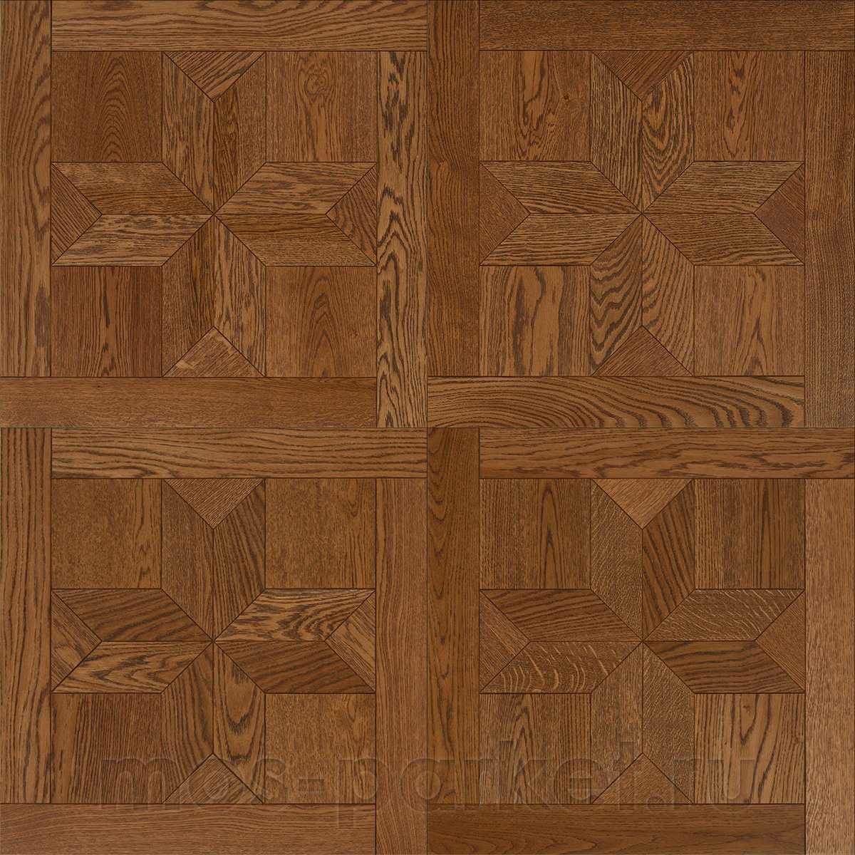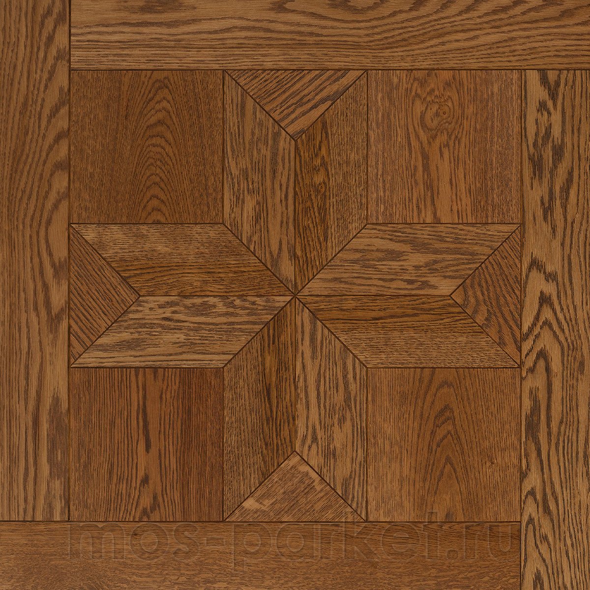 Модульный паркет Coswick 1106-1204-10 Блуа Дуб Орех из коллекции Dark Wood выполнен в виде симметричного геометрического орнамента с элементами перекрёстного французского шеврона в центре. Рисунок создаёт уникальный эффект визуальной гармонии и балансирует пространство. Его чёткие линии и симметричное расположение элементов создают элегантную, но при этом динамичную атмосферу. Ценный слой из брашированной ламели натурального дуба медно-коричневого цвета в сортировке "Селект энд Бэттер" покрыта модифицированным шёлковым маслом-акрилатом УФ-отверждения.