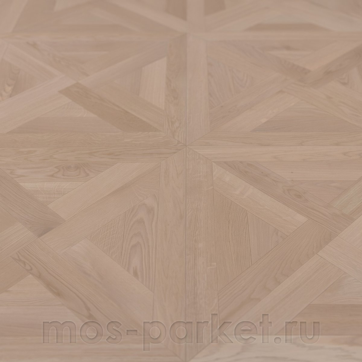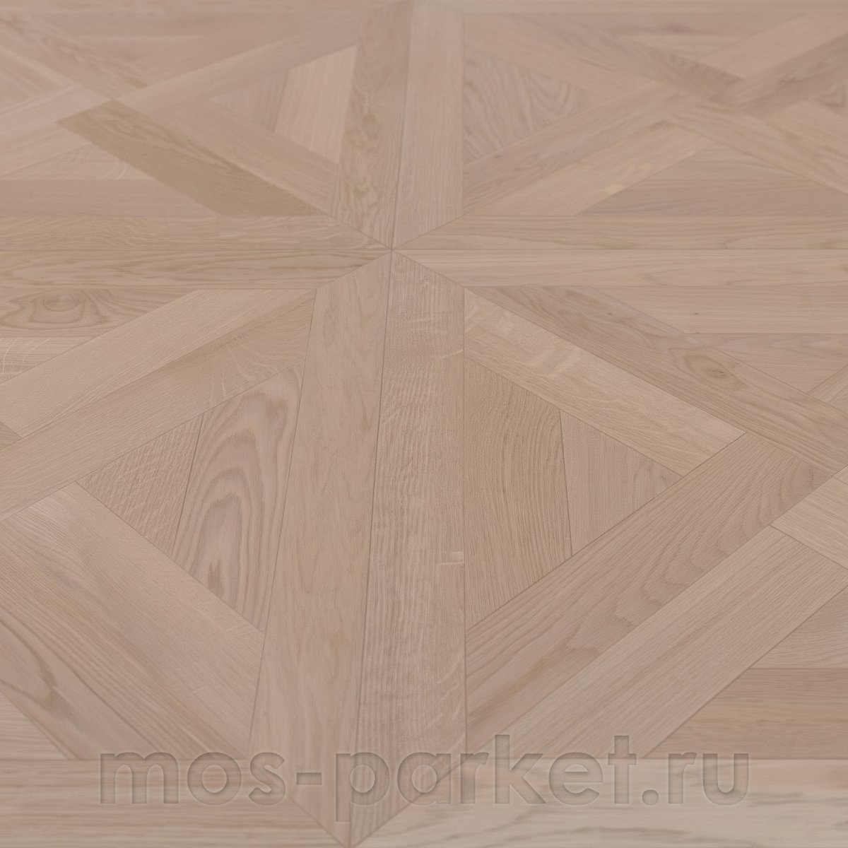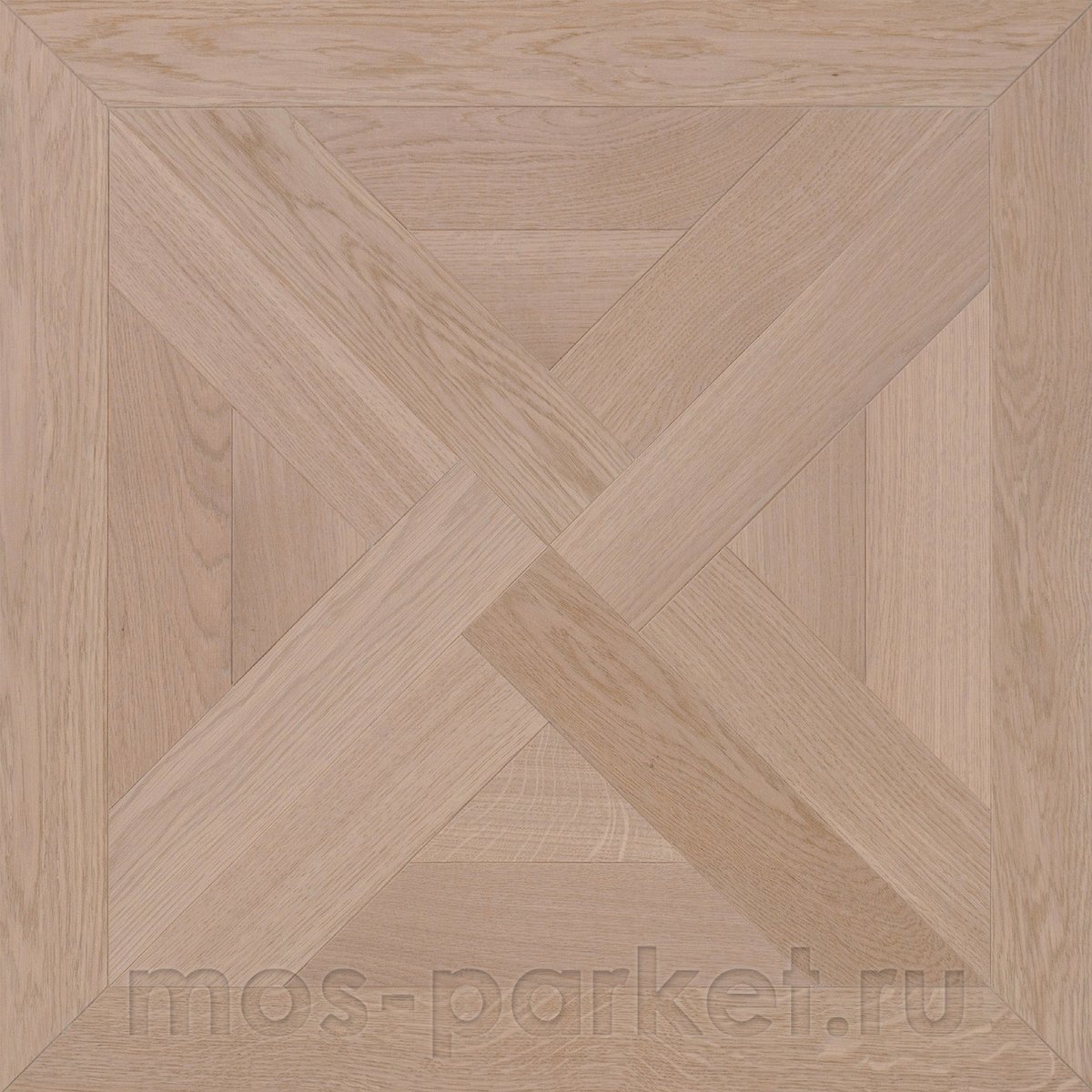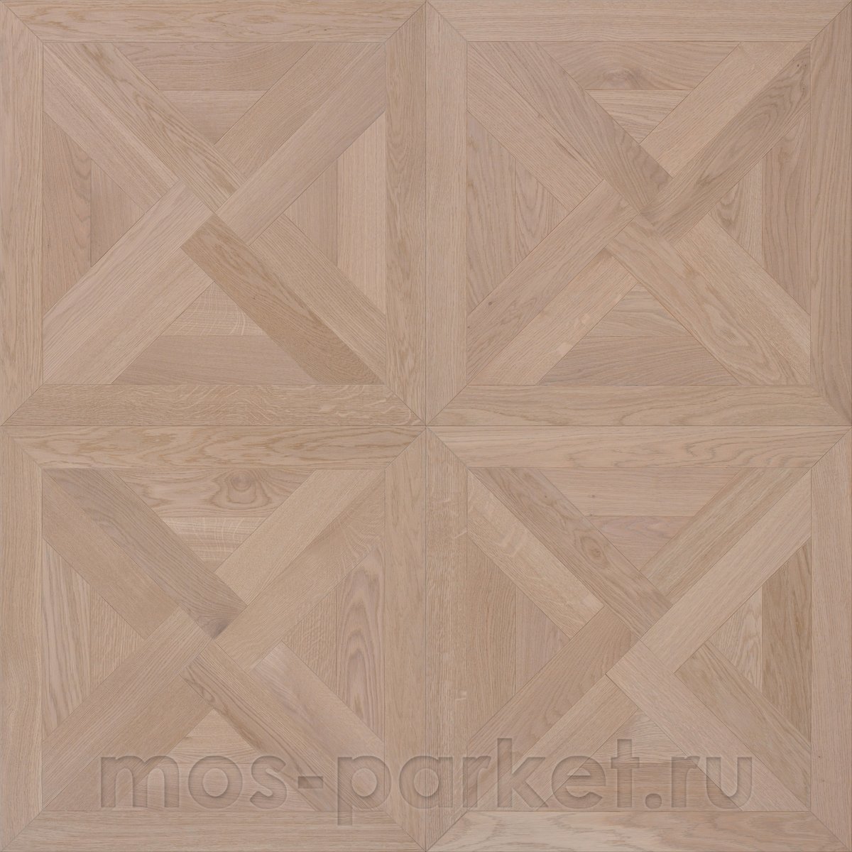 Модульный паркет Coswick Трианон Дуб Серый Дэви из коллекции Gray Shadow сочетает строгую геометрию классического узора и современную игру оттенков серо-кремового дуба. Рисунок «Трианон» построен на пересекающихся диагоналях, которые формируют симметричный орнамент. Благодаря светлому пастельному тону, пол визуально расширяет пространство и делает интерьер лёгким и гармоничным.
