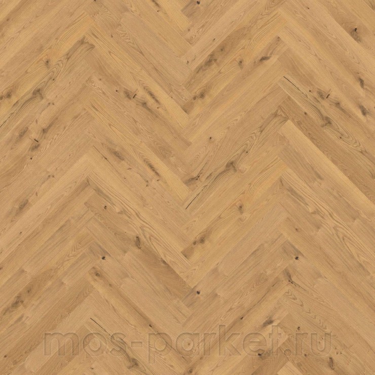 Формат планок этой серии отличается более крупным размером по сравнению с традиционными ёлочными паркетами, благодаря чему рисунок укладки выглядит особенно выразительно и солидно. Такой паркет хорошо раскрывается в просторных помещениях, где можно подчеркнуть масштаб древесной текстуры и архитектурную геометрию пола.