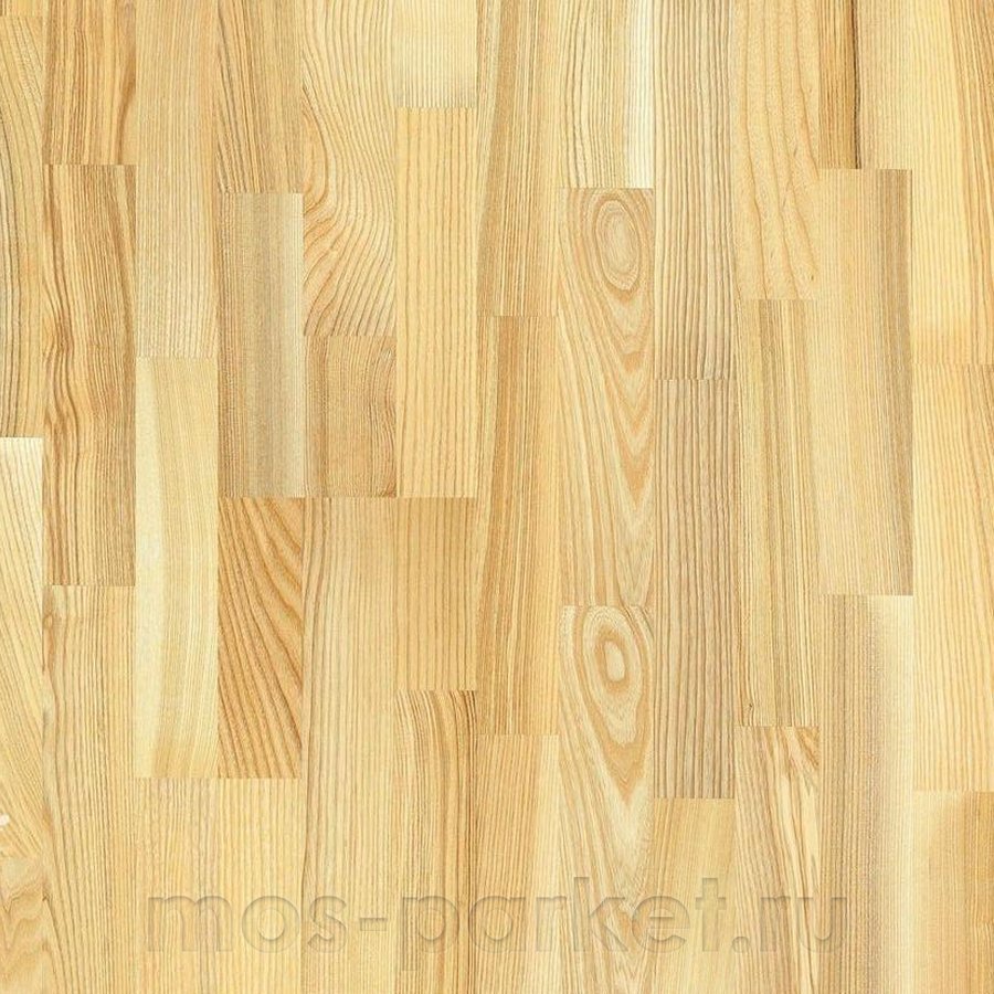 Трёхполосная паркетная доска Blanco Ясень Prime 3S бежевого цвета от производителя Karelia-Upofloor. Доски толщиной 14 мм на замковой системе RealLoc не имеют фаски. Верхняя ламель ясеня 3,5 мм в селекции Кантри / Робуст покрыта матовым лаком. Напольное покрытие Ясень Прайм (3031128160100140) продаётся упаковками по 8 досок размером 188×2266 мм общей площадью 3,41 м². Предоставляется гарантия производителя в 10 лет для бытовых помещений.