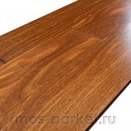 Массивная доска из экзотического дерева Афрормозия средняя от Английского производителя Sherwood Parquet в коньячном цвете. Афрормозия — большое дерево из полу-лиственных лесов Западной и Центральной Африки. Сердцевина, как правило, желтовато-коричневая, бывают случаи, когда может иметь либо красноватый, либо оливковый оттенок. Цвет имеет тенденцию темнеть с возрастом. Массивные доски формата 120×910 мм с плавной U фаской покрыты полуглянцевым лаком и укладываются на клеевую основу стыкуясь между собой, по системе шип-паз. Планки толщиной 18 мм без декоративной обработки.