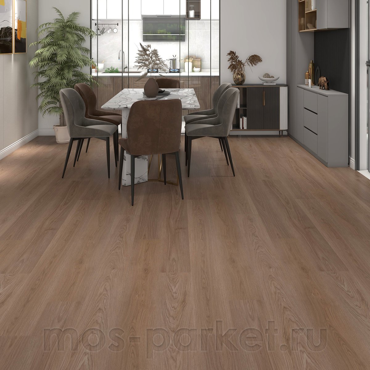 SPC конструкция делает Pereli абсолютно водостойким материалом. Ванная, кухня, прихожая с постоянной влажностью и грязью – покрытие выдержит все без деформаций и вздутий. Защитный слой 0,5 мм работает как надежный щит от царапин, потертостей и следов от мебели. Если дома есть животные или активные дети, это покрытие справится с нагрузкой. На среднем серо-коричневом тоне пыль почти не видна, что упрощает уход.
