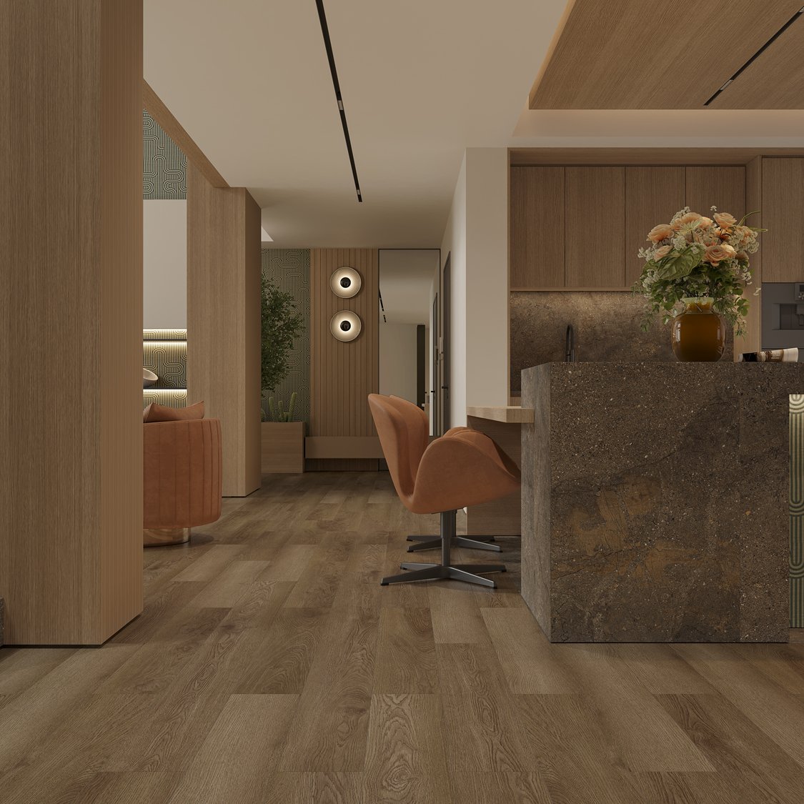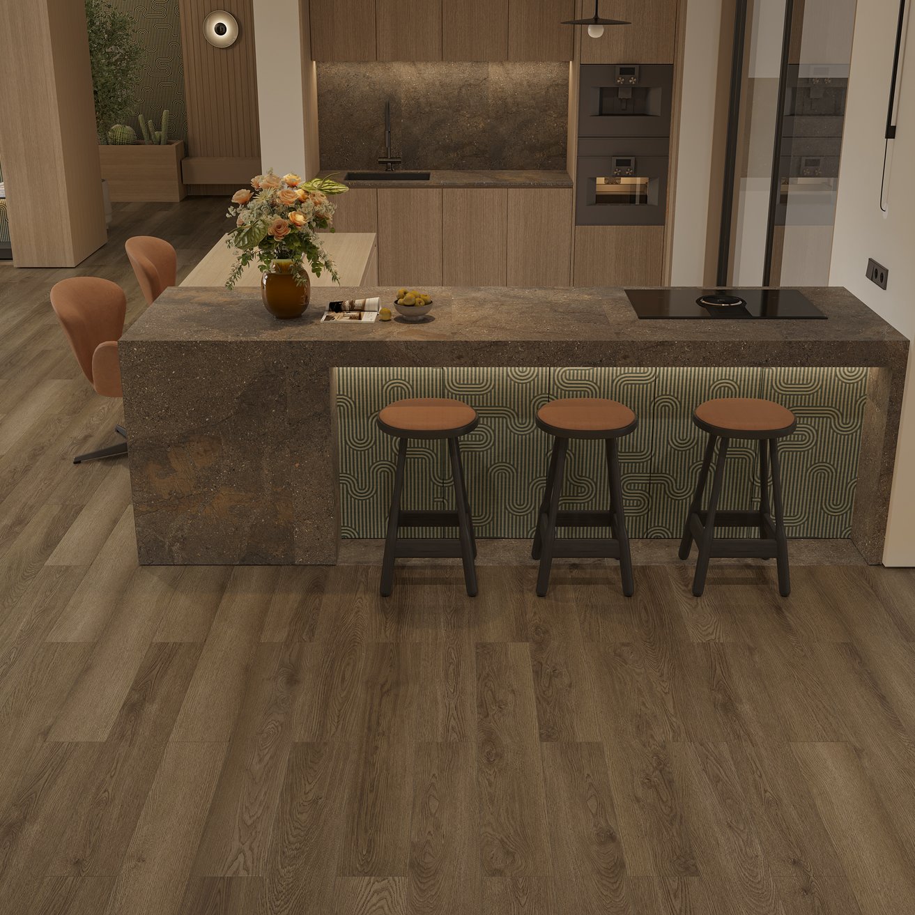 Влагостойкий SPC ламинат 43 класса Hygge в однополосном декоре Рейкьявик (Reykjavik) тёмно-коричневого цвета с фаской по периметру и замковым типом соединения, для плавающего способа укладки от производителя Ensten. Планки толщиной 4 мм в дизайне под дерево имеют синхронное тиснение и реалистично передают фактуру материала, который на 100% водостойкий и не впитывает воду, даже при длительном контакте. Напольное покрытие Hygge Рейкьявик (ECO 102-27) продаётся упаковками по 10 планок размером 180×1524 мм общей площадью 2.743 м². Предоставляется гарантия производителя Ensten.