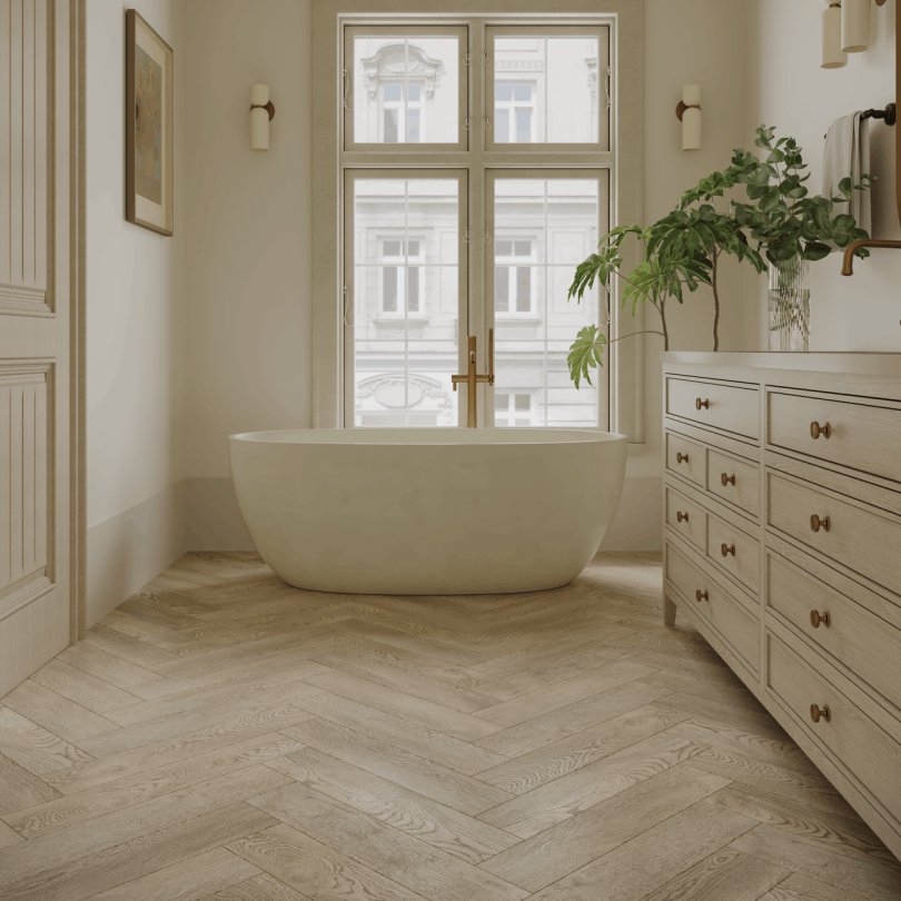 Каменный SPC паркет 34 класса Norland в формате английской ёлки 1055-18 Torro светло-серого цвета с фаской по периметру для плавающего и клеевого способа укладки, толщиной 4 мм от Российского производителя Norland. Дизайн выполнен под Английскую ёлку. Напольное покрытие Parquet S Torro (1055-18) продаётся упаковками по 26 планок размером 125×600 мм общей площадью 1.95 м². Предоставляется гарантия производителя Norland в 25 лет.