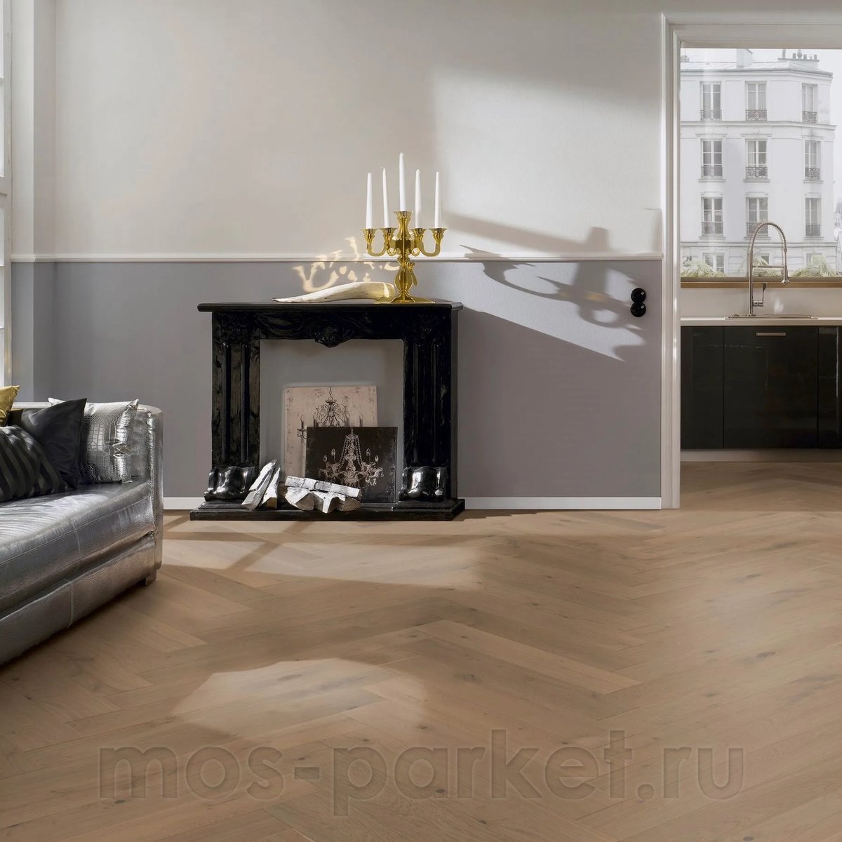 Этот декор передаёт природную палитру зрелого дуба - от тёплого мёда до мягкого коричневого. Фактура подчёркнута брашированием, благодаря чему структура древесины становится рельефной и осязаемо живой. Лак с экстра-матовым эффектом приглушает блики, сохраняя насыщенность цвета и придавая поверхности шелковистую глубину. Сучки и лёгкие контрасты оттенков подчеркивают натуральное происхождение каждой планки.
