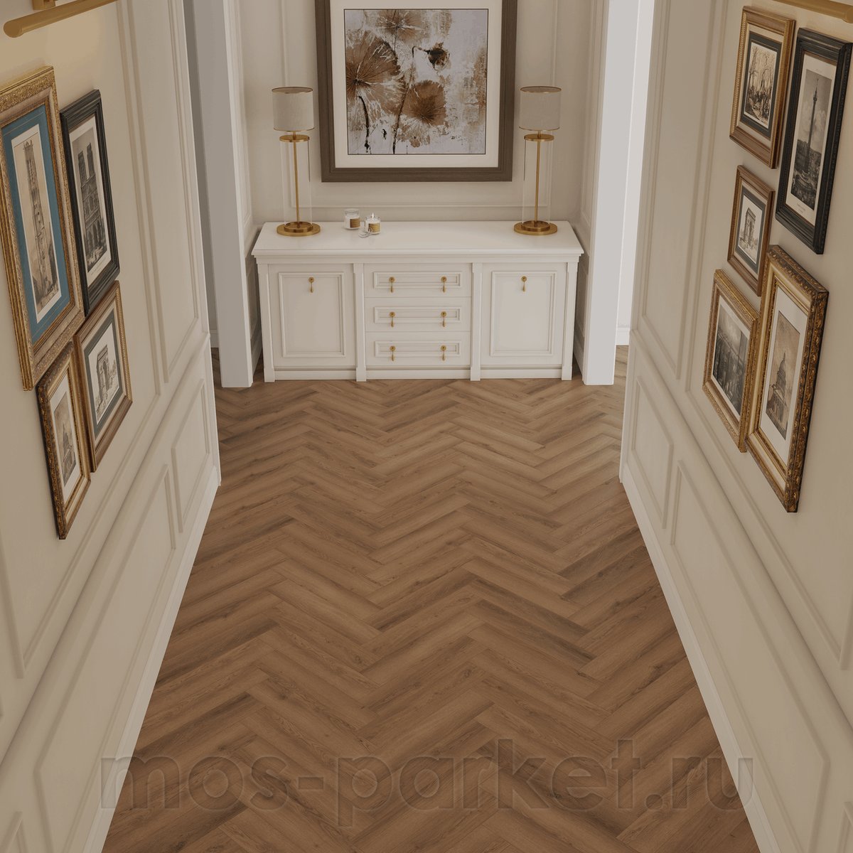 Формат английской ёлочки с крашеной 4V фаской подчёркивает геометрию рисунка и добавляет полу глубины. Декор Art Parquet Kaskad 1005-19 гармонично вписывается в современные, неоклассические и скандинавские интерьеры, сочетаясь с натуральным текстилем, спокойной цветовой палитрой, деревянной мебелью и лаконичными дверями. Отличный выбор для квартир, домов и коммерческих пространств.