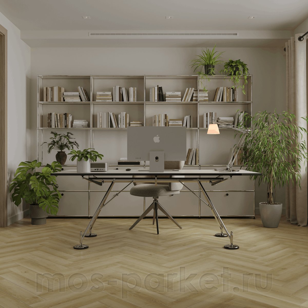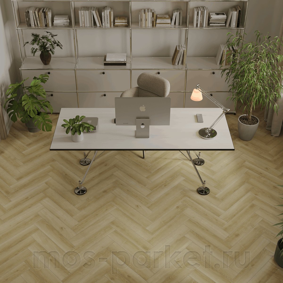 SPC паркет Tulesna Art Parquet в декоре Legion — это современное прочтение классической английской ёлочки. Характерный светло-бежевый цвет и выразительная древесная фактура создают ощущение уюта и архитектурной строгости, напоминая натуральный паркет, адаптированный под ритм городской жизни.