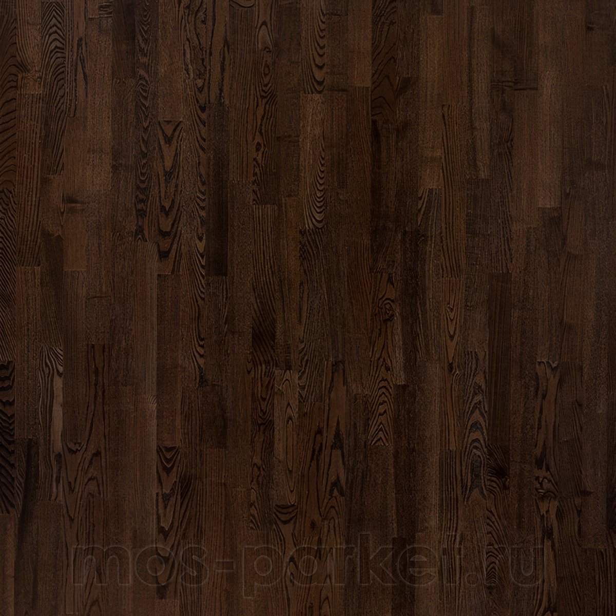 Тёмно-коричневая трехполосная паркетная доска Upofloor Forte Ясень Bonfire Matt 3S покрыта матовым лаком. Планки толщиной 14 мм на замковой системе RealLoc не имеют фаски. Верхняя брашированная ламель ясеня в селекции Кантри 3,5 мм Напольное покрытие Forte Ясень Bonfire MATT (3031318165257112 / 3031318155257112) продаётся упаковками по 8 планок большого формата 188×2266 мм общей площадью 3.41 м². Срок службы достигает до 30 лет в жилых помещениях при условии соблюдения правил ухода и эксплуатации за полами.
